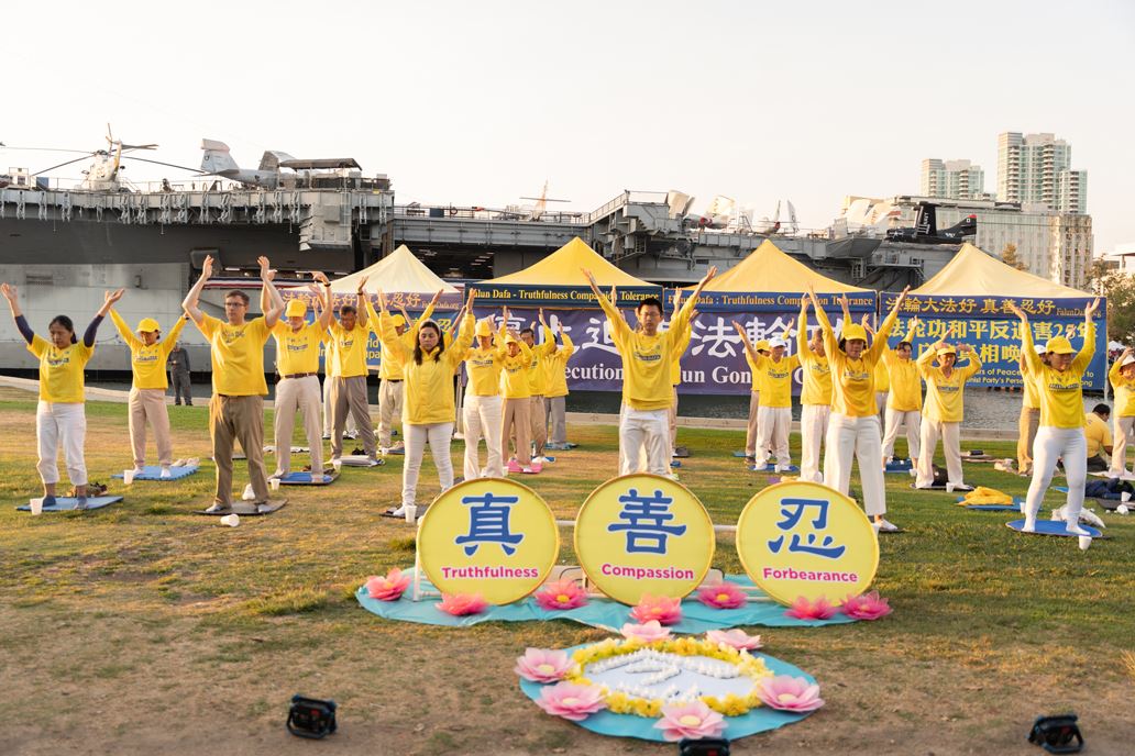 ![]() 图1~2:二零二四年七月十三日,加州圣地亚哥法轮功学员集体炼功。 |
