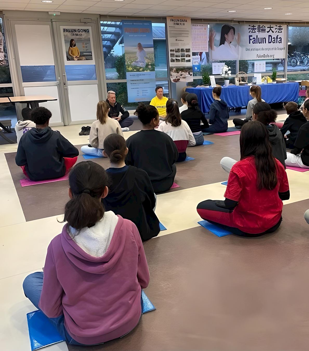 二零二四年也是法国举办奥运会的年份。法轮功学员和师生们还探讨了参加奥运会的顶尖运动员越来越注重心理素质训练的问题。他们也学习静心打坐,来缓解压力、对抗失利时的挫折感以及帮助身体受伤后的恢复。如今越来越多的竞技者开始练习静心打坐冥想。