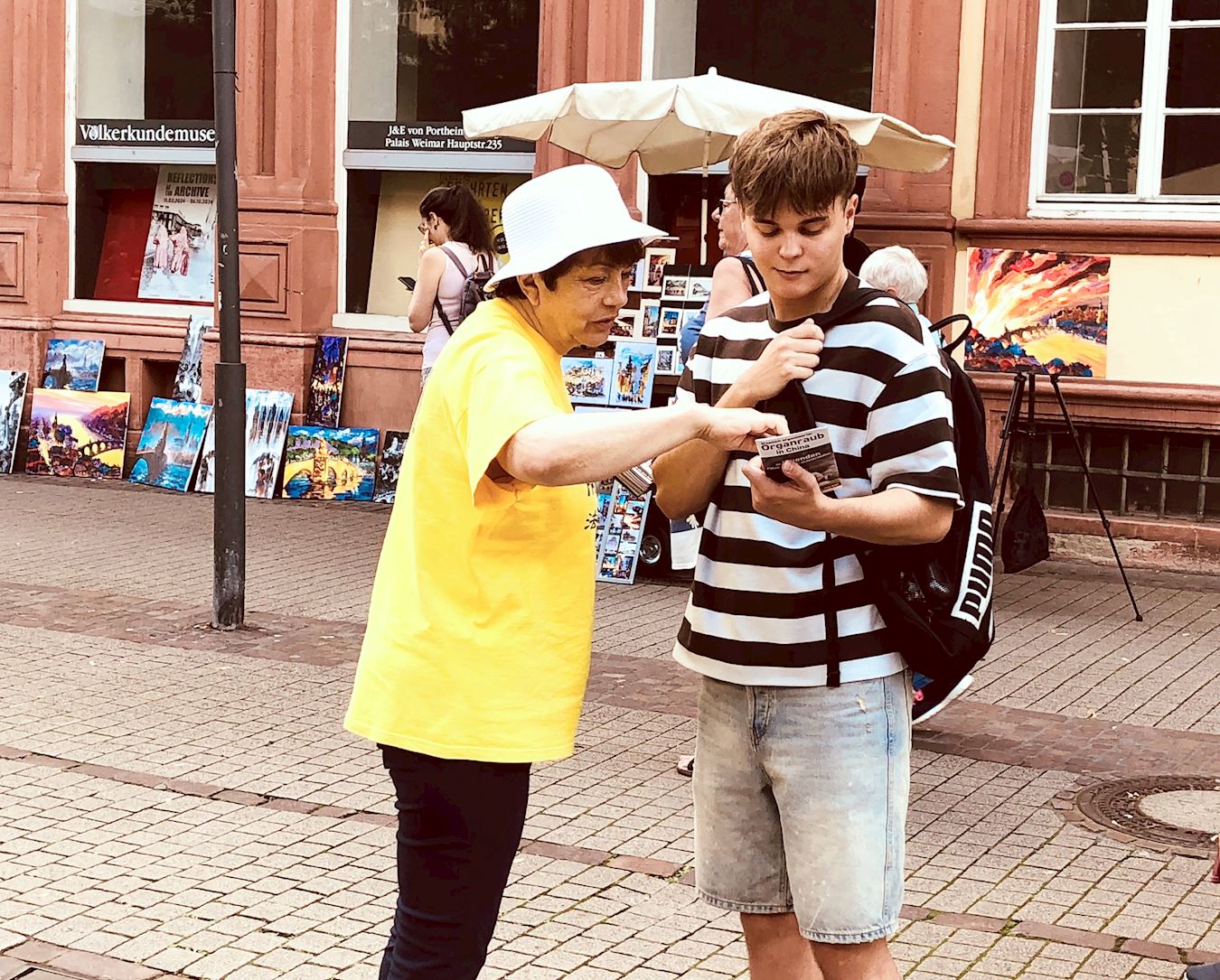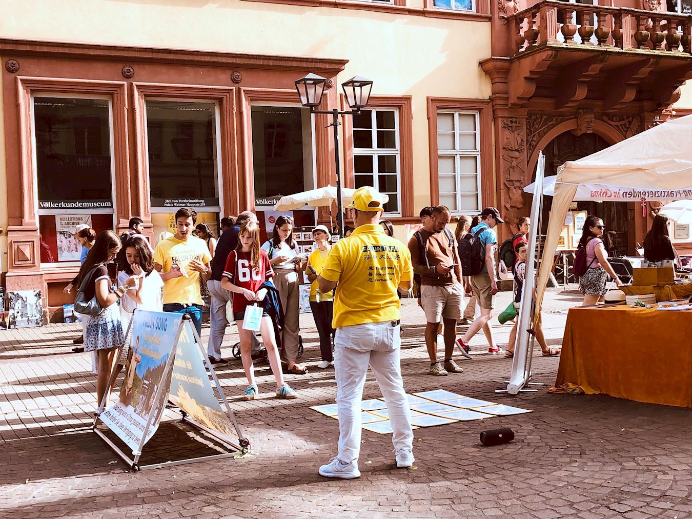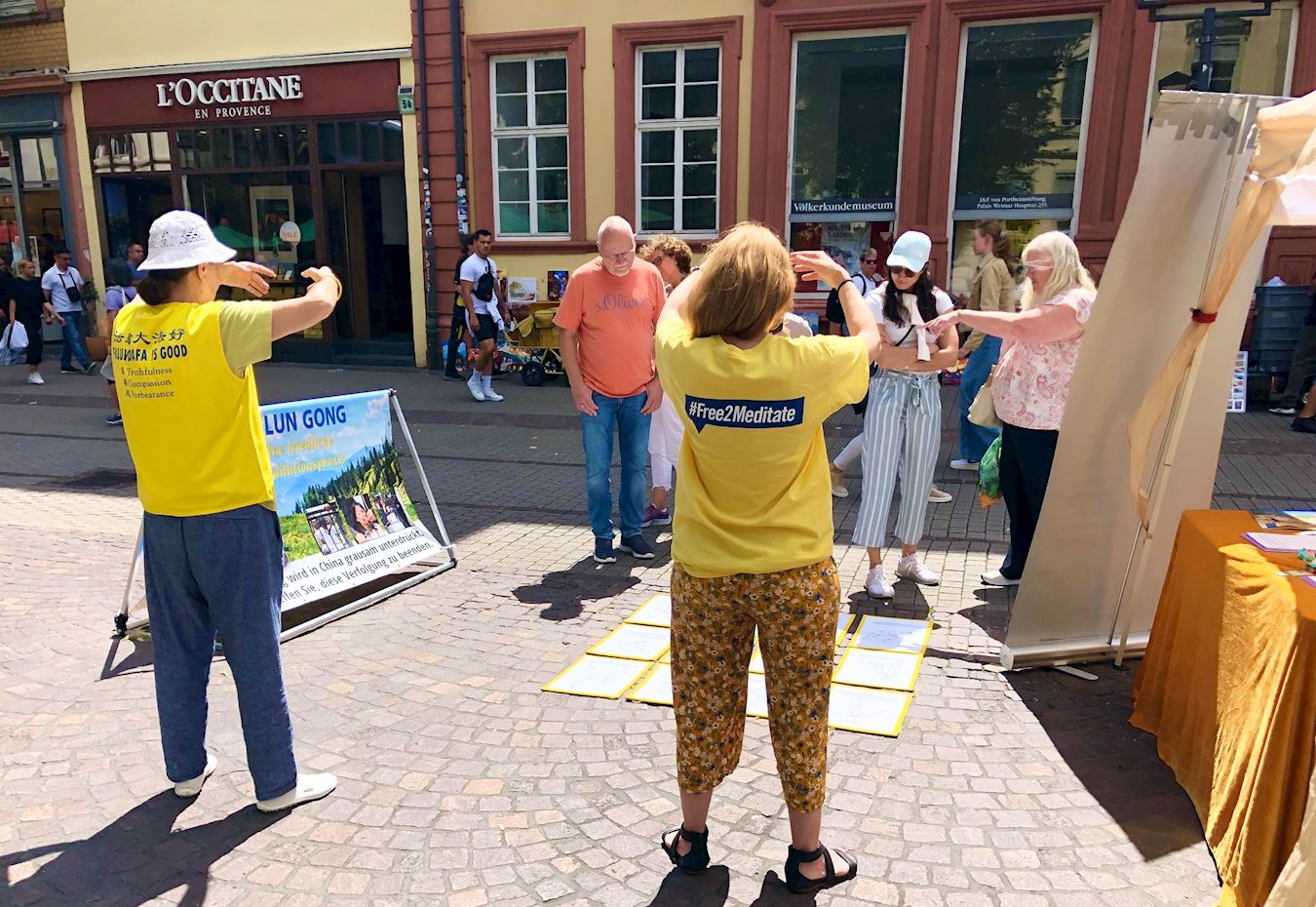 ![]() 图1:二零二四年七月十三日,德国莱茵-内卡地区法轮功学员在著名旅游名城海德堡(Heidelberg)举办纪念反迫害二十五周年的活动。图为法轮功学员向路人展示功法。 |
