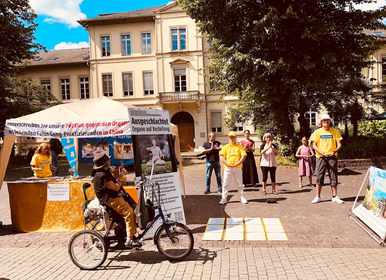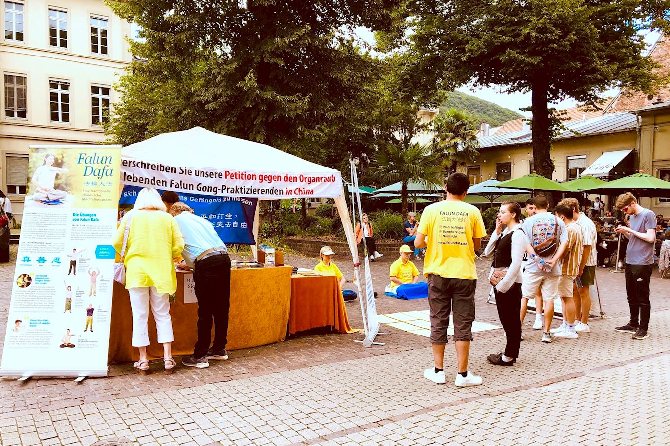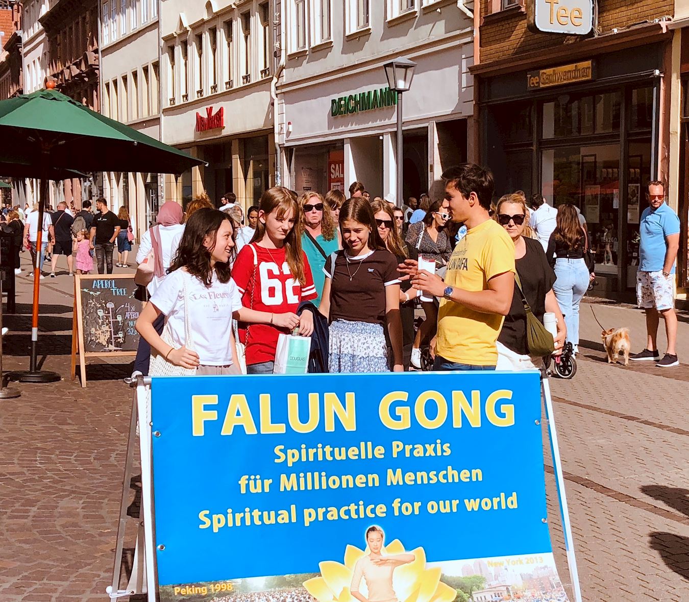 ![]() 图1:二零二四年七月十三日,德国莱茵-内卡地区法轮功学员在著名旅游名城海德堡(Heidelberg)举办纪念反迫害二十五周年的活动。图为法轮功学员向路人展示功法。 |