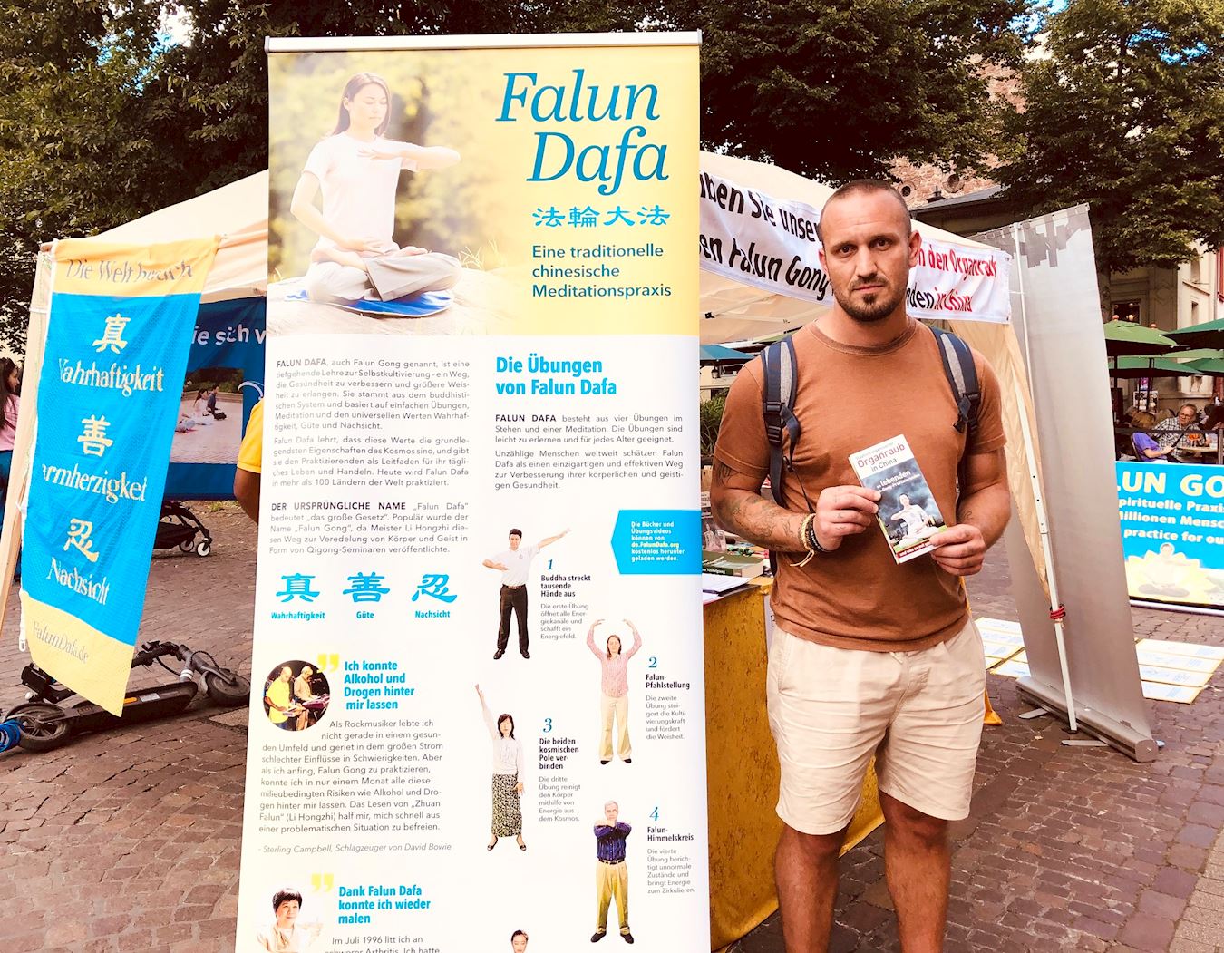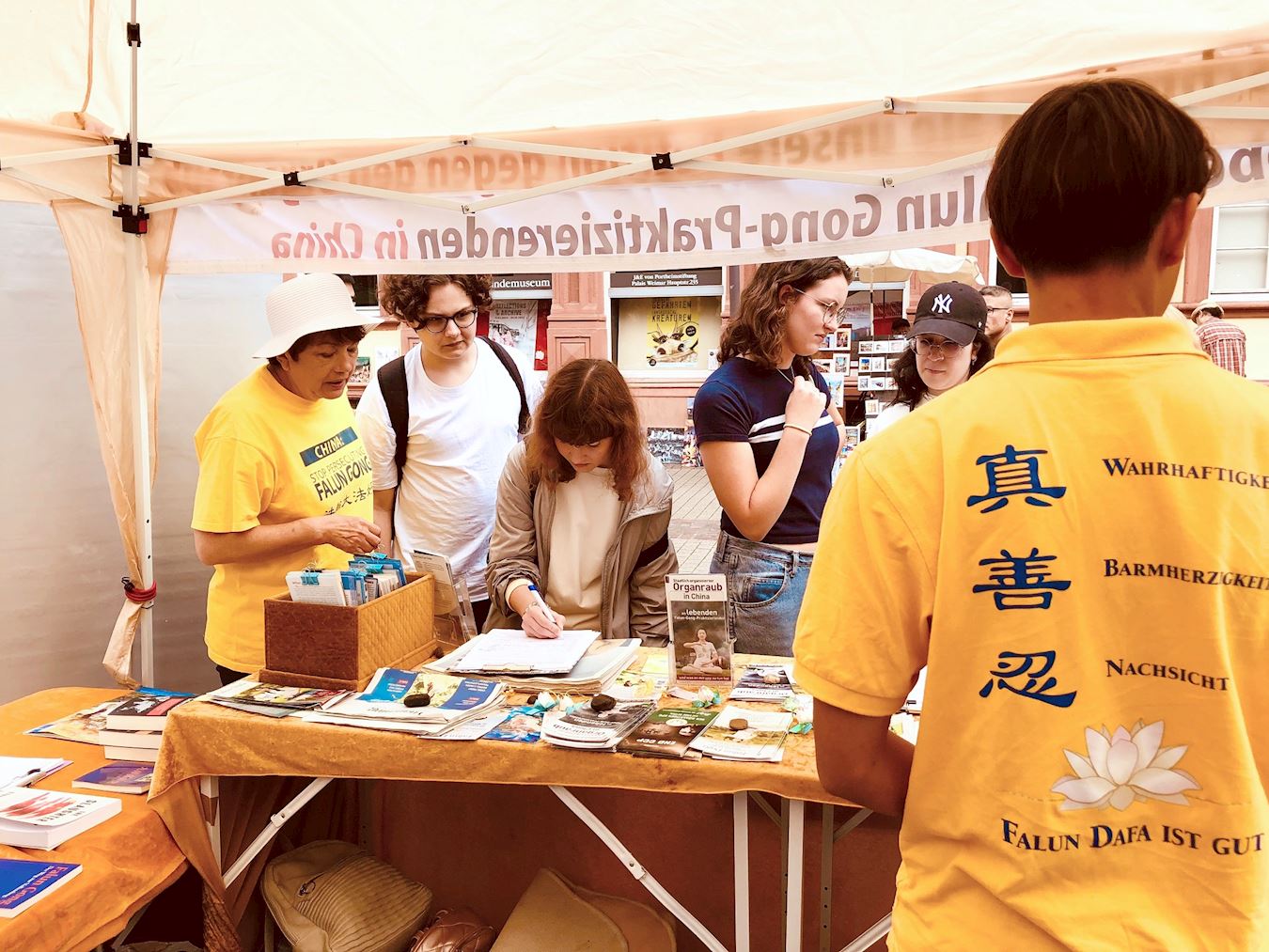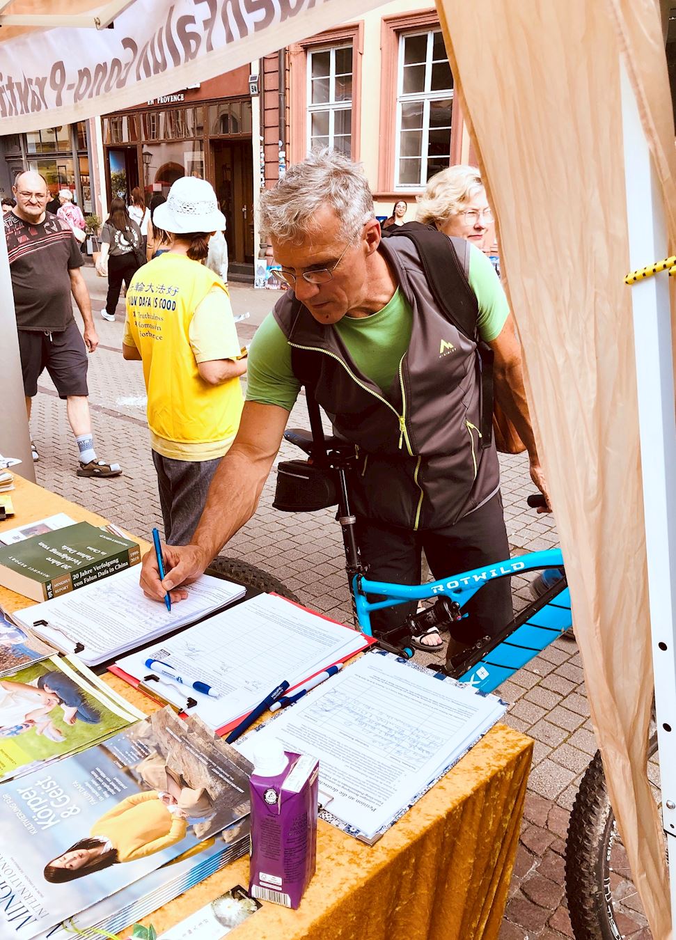从事教育工作的马克•容(Marc Jung)认真阅读了法轮功学员送发的传单。他告诉学员,此时自己的心情非常难过。马克说,“很不幸,中国仍然存在很多压迫。我刚才签署了(反对活摘器官)请愿书,因为任何人都不应该在这样的条件下生活。”