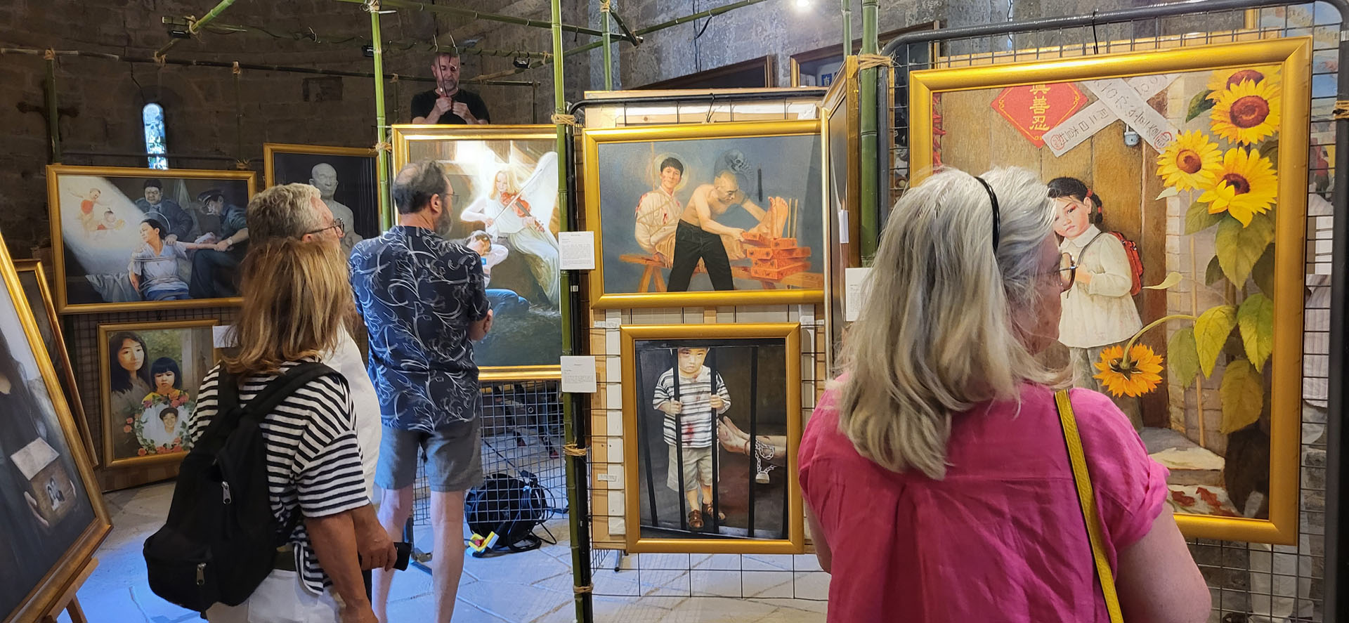 ![]() 图10:阿兰·罗吉尔(Alain LAUGIER)(左)在教堂观看画展。 |