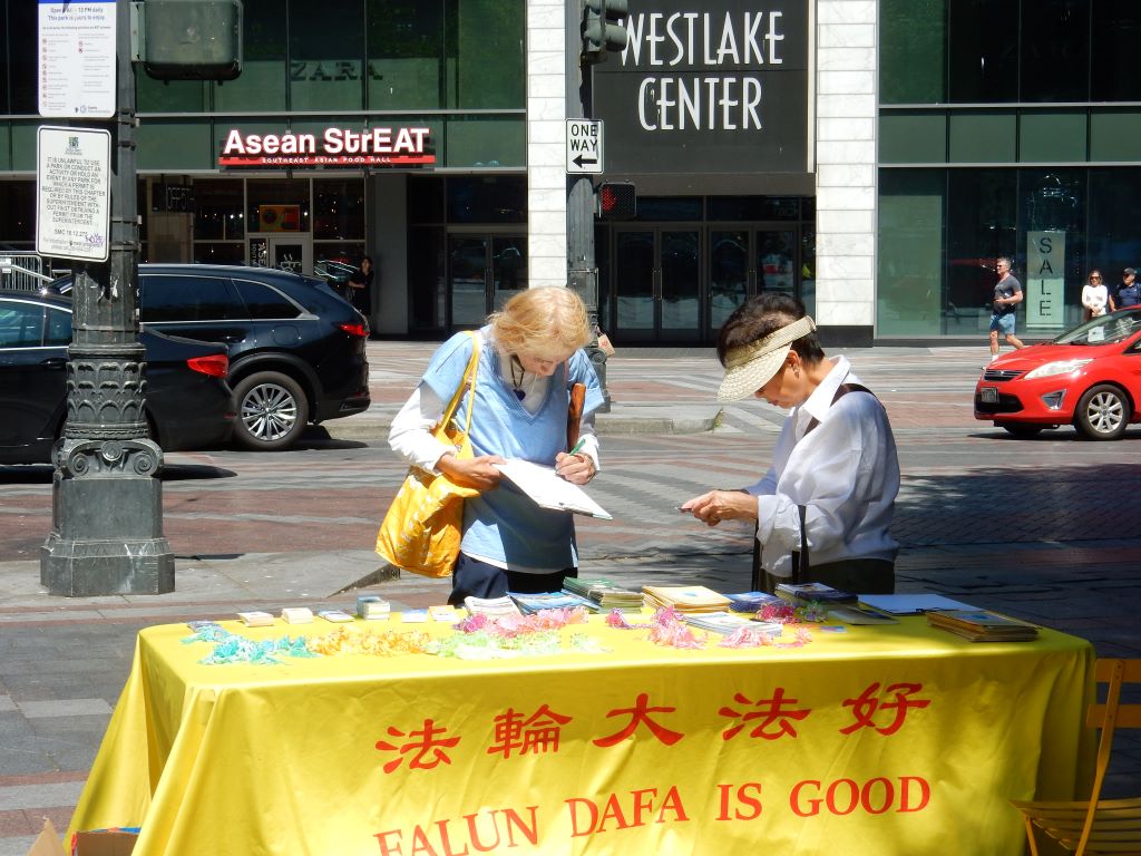 “我在美国的家人到华州议员办公室求救,获救后,我来到西雅图,从此获得自由。我感谢美国政府对法轮大法的支持和帮助。我愿和美国和全世界善良的人士一起努力,结束中共对法轮功的迫害。”