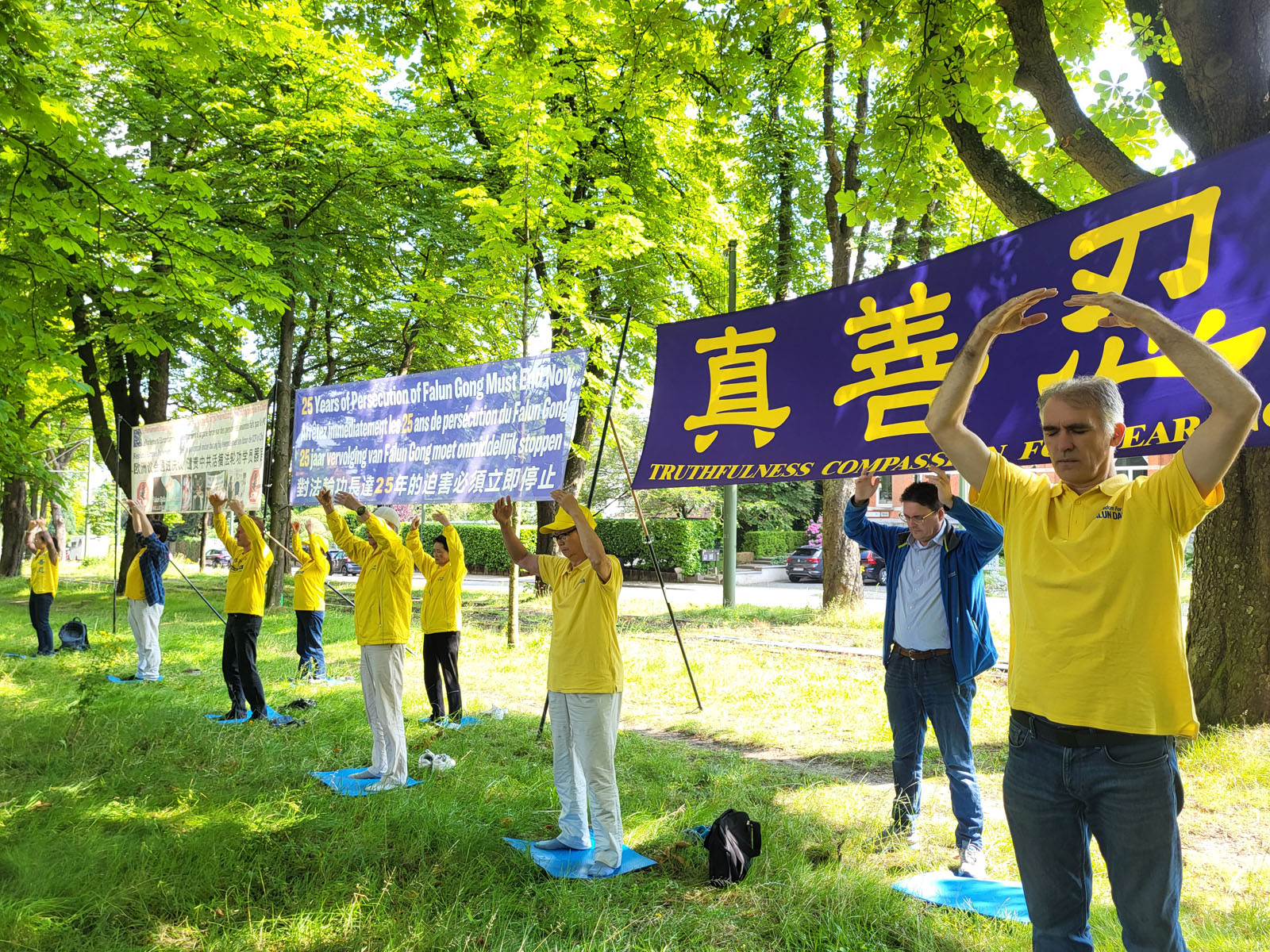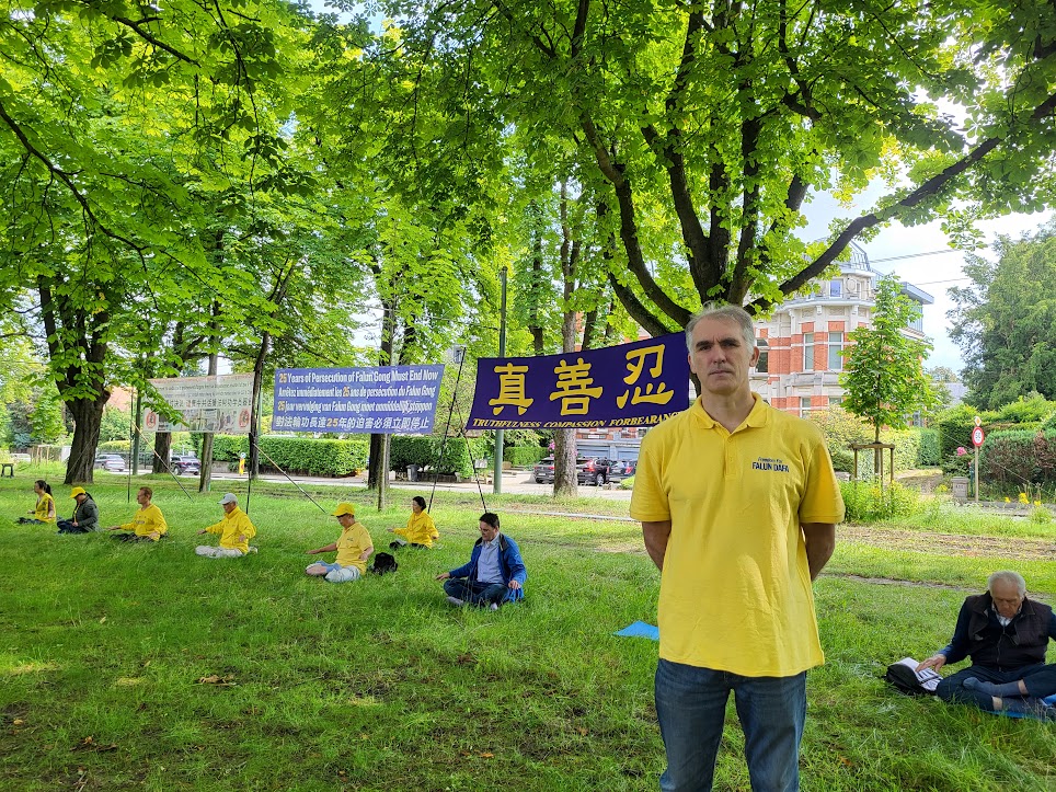 “今天在中使馆前参加反迫害活动,就是希望生活在中国的同修,能够和我一样在和平的环境中修炼,不再被迫害。”