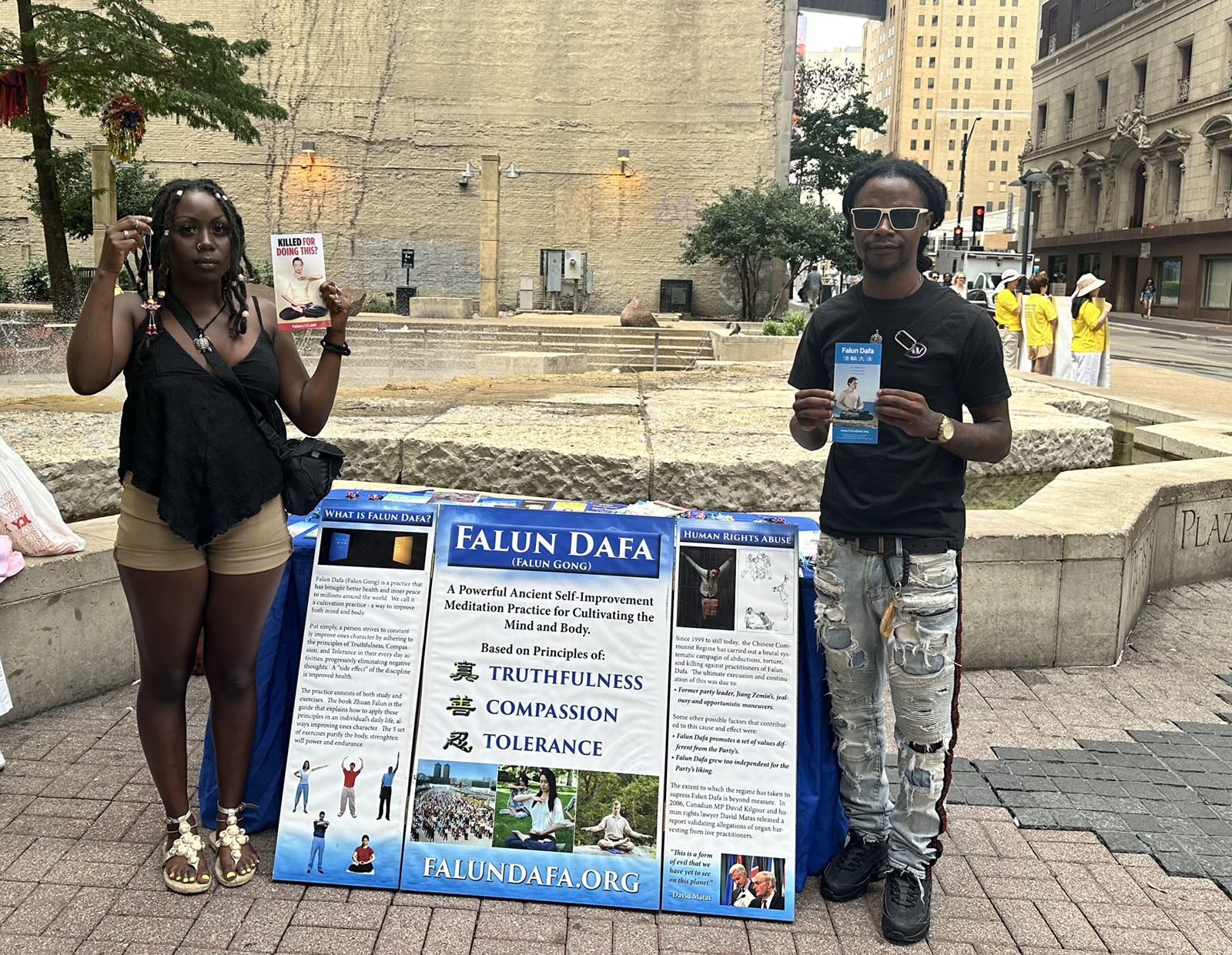 当天妮娜(Nina)和都林(Durin)来市图书馆,午餐时途径飞马广场,他们分别与几位法轮功学员交流,了解了法轮功真相,得知了法轮功是什么样的功法,在中国大陆发生的对法轮功修炼者的残酷迫害,及中共在海外对法轮功学员的骚扰等方方面面的情况之后,他们觉得收获非常大。他们认为法轮功学员这样义务付出使更多人明白中共对好人的迫害,曝光它们,很让人敬佩。最后两人在法轮功真相展位前合影,支持法轮功反迫害。