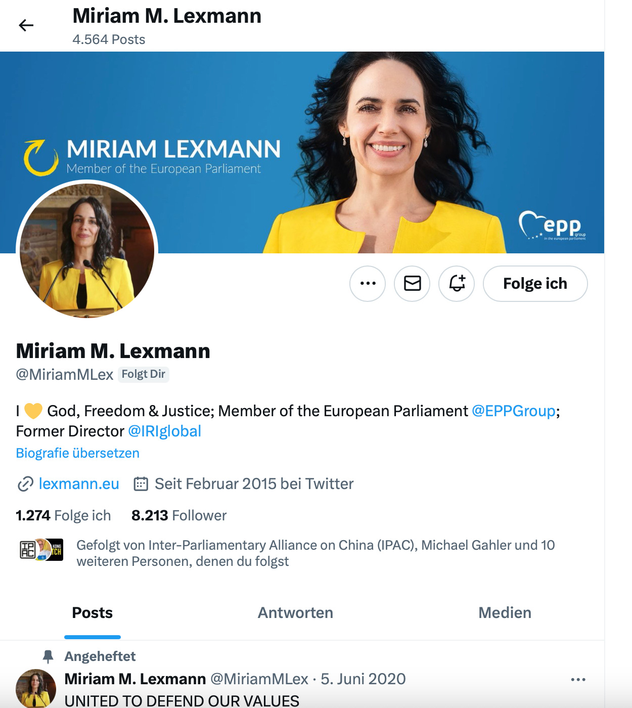 图1:欧议会米里亚姆·莱克斯曼议员社交平台发文截图。