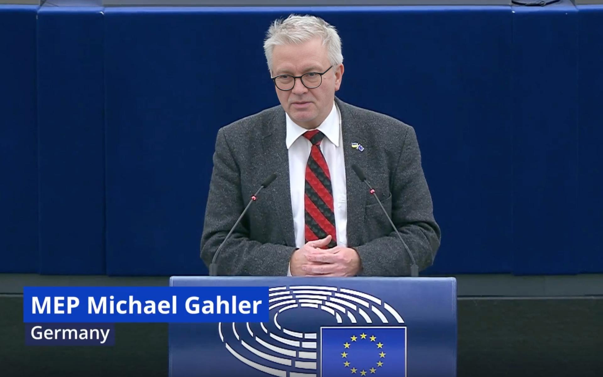 图5:欧议会迈克尔·加勒议员在欧洲议会紧急决议案辩论会上发言。
