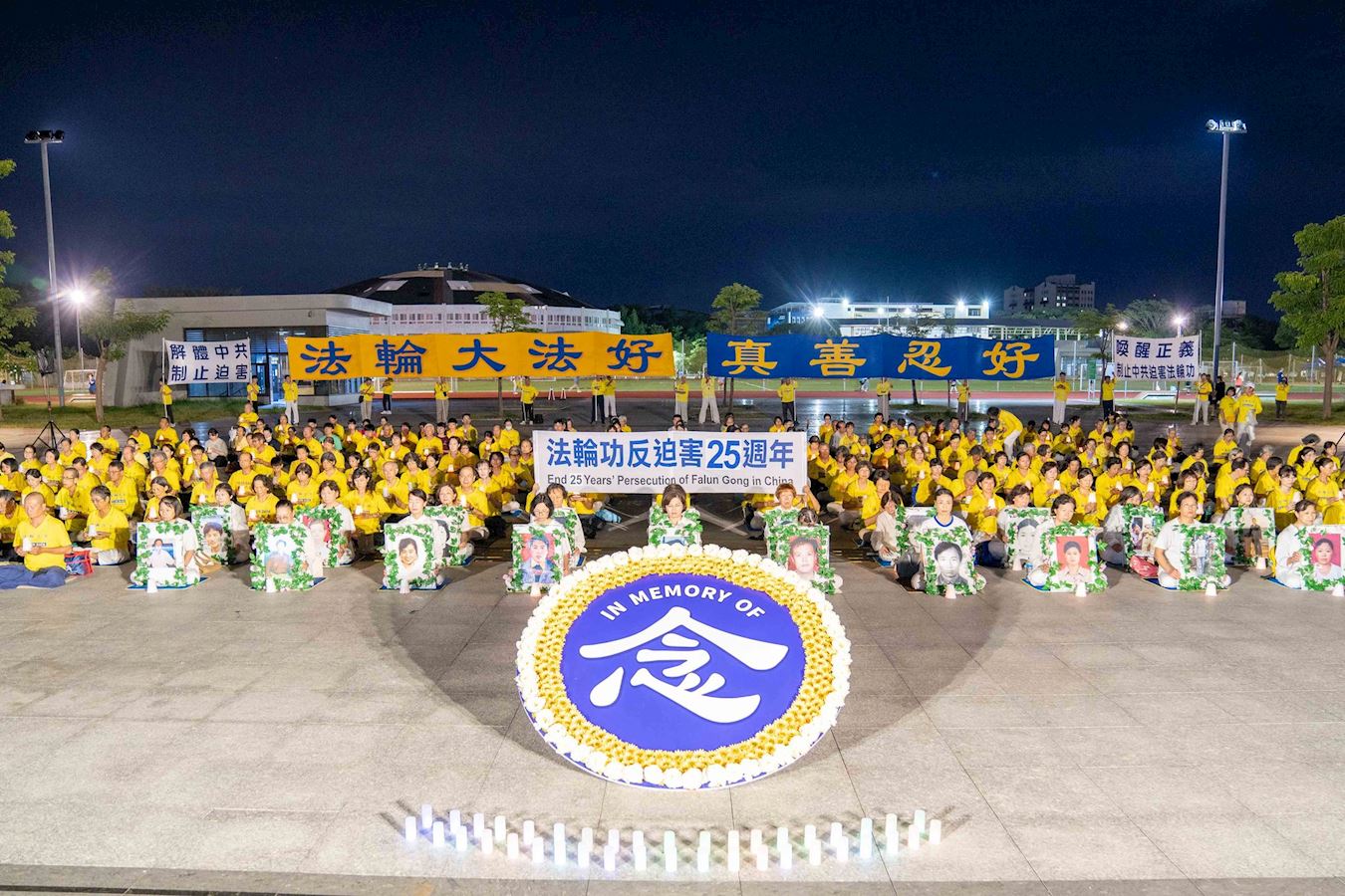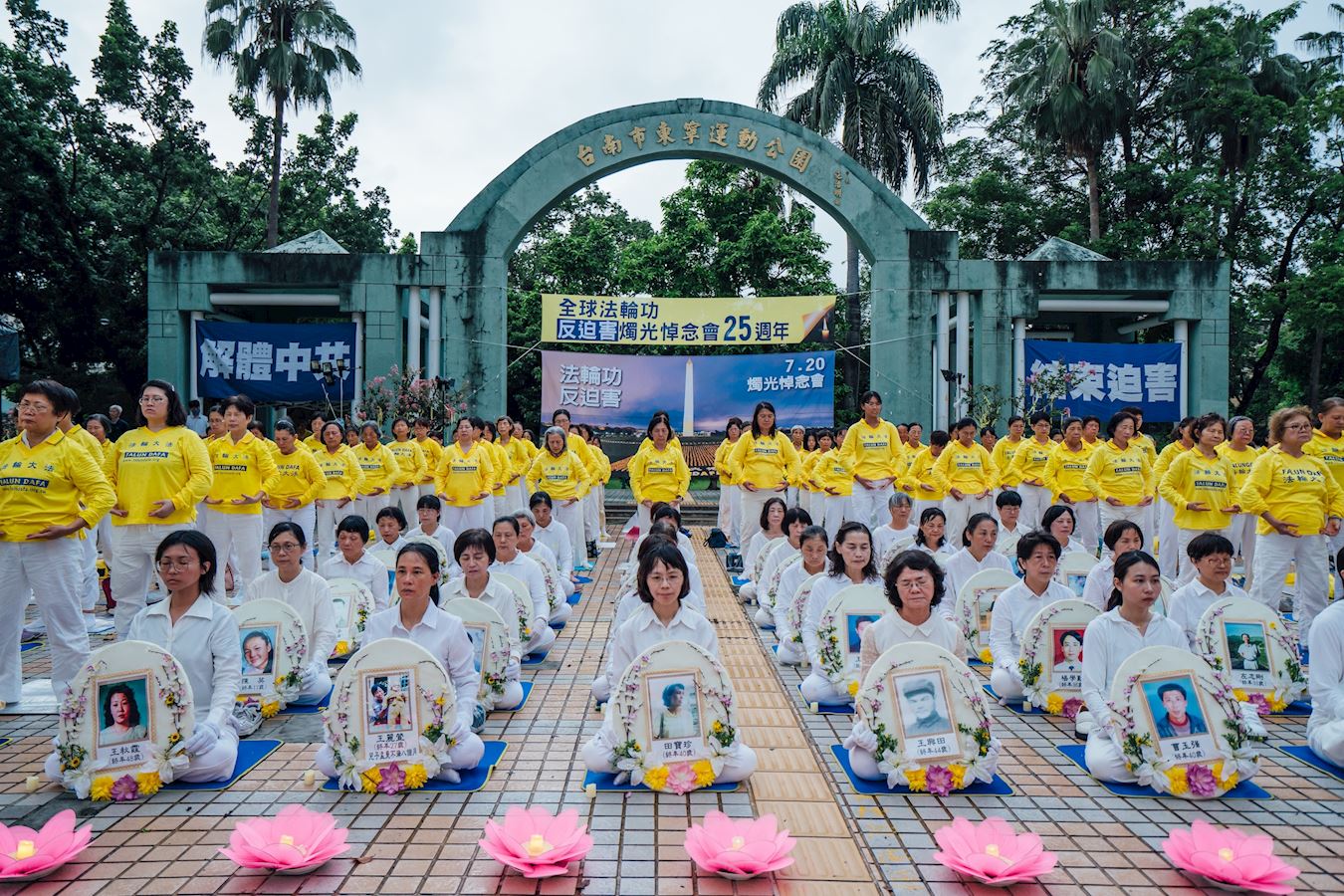 从薄暮到入夜,法轮功学员平和有序的集体炼功、静坐,其间并透过影片回顾二十五年来法轮功学员和平理性反迫害的画面。感佩学员坚持不懈地讲真相,台南、高雄地区议员,以及正义人士纷纷到场声援,呼吁中共停止迫害法轮功。