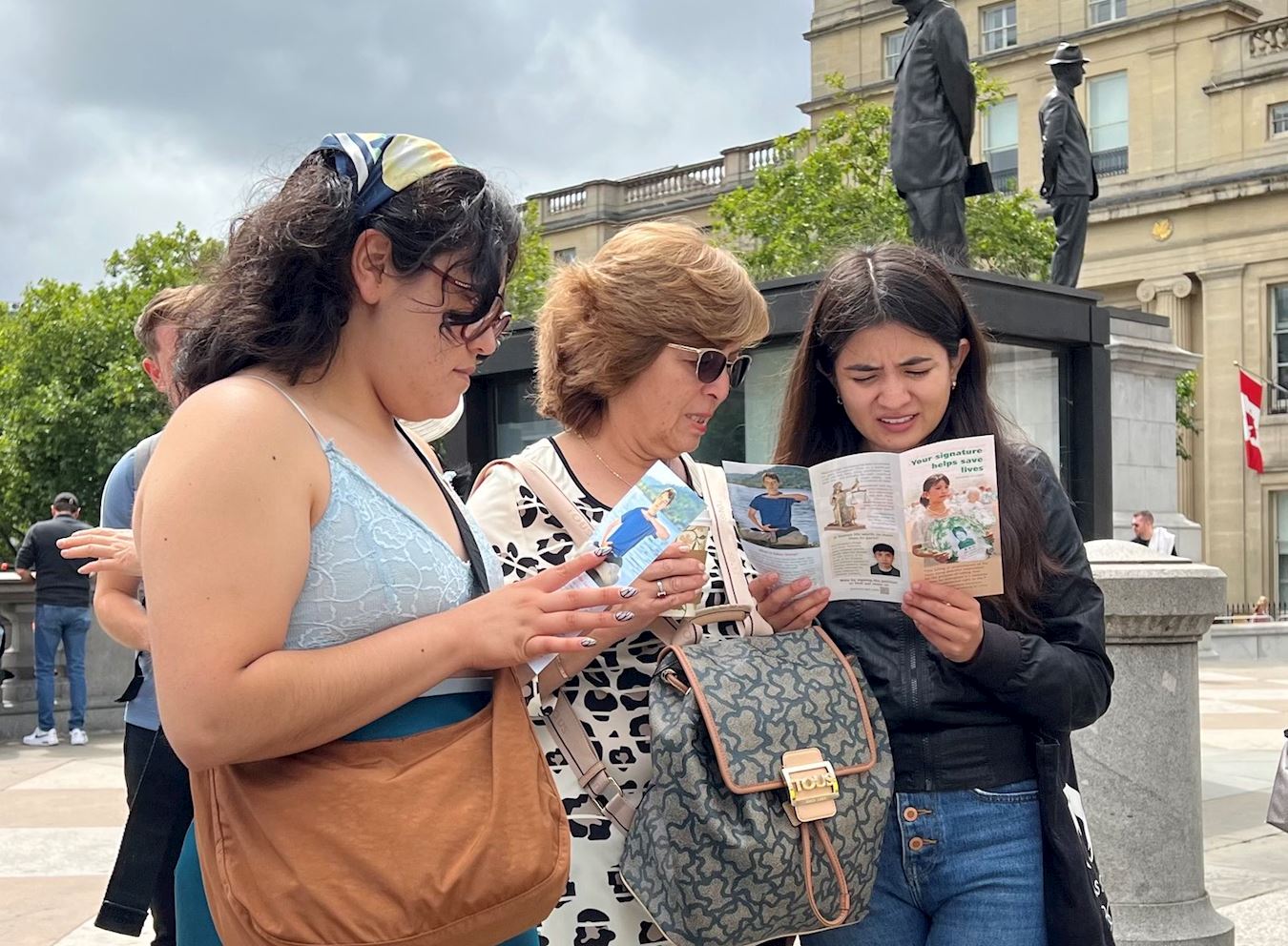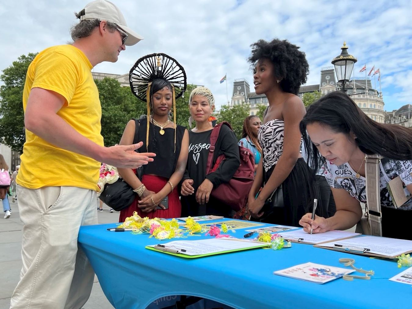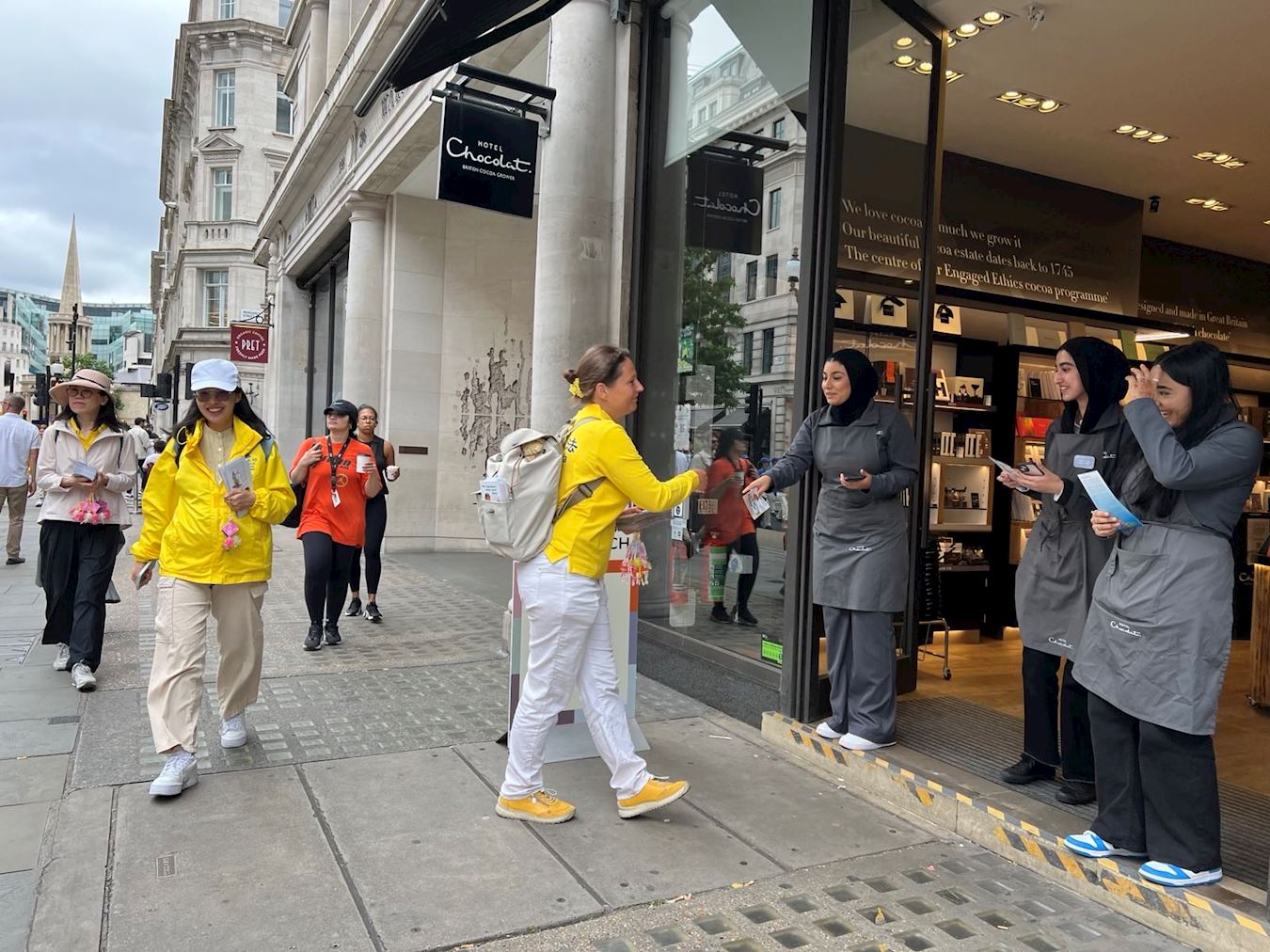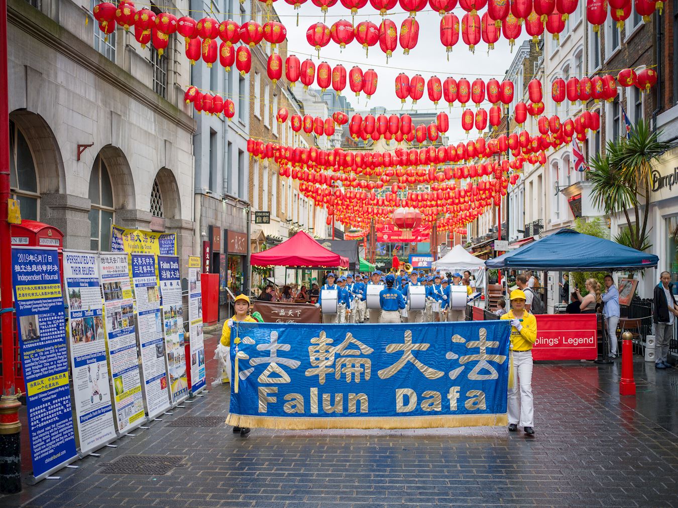 游行队伍浩浩荡荡,一路途经伦敦市中心最繁华的商业街和热闹的唐人街,最后抵达著名的特拉法加广场(Trafalgar Square)。在广场北台的英国国家肖像馆门前,法轮功学员举行了新闻发布会,揭露中共的暴行。并向首相办公室递交了一箱沉甸甸的请愿书,这份请愿书凝聚了超过三万名英国民众的签名,他们共同呼吁英国政府能够对法轮功学员的遭遇施以援手,帮助早日结束这场迫害。