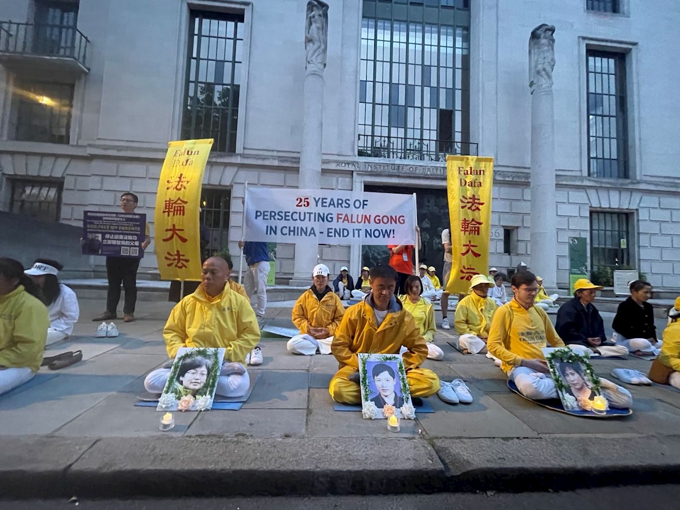 法轮功学员丁乐宾宣读了写给英国首相的公开请愿信,请求英国政府采取切实行动,制止中共对法轮功长达二十五年的迫害。信中详细描述了丁乐宾一家三口因迫害而分离十二年的遭遇,以及中共对法轮功学员的非法抓捕、判刑、酷刑、甚至活摘器官等罪行。