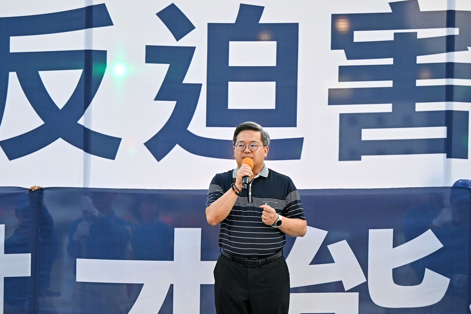 ![]() 图4:台湾议员李建昌到场发言声援法轮功。 |