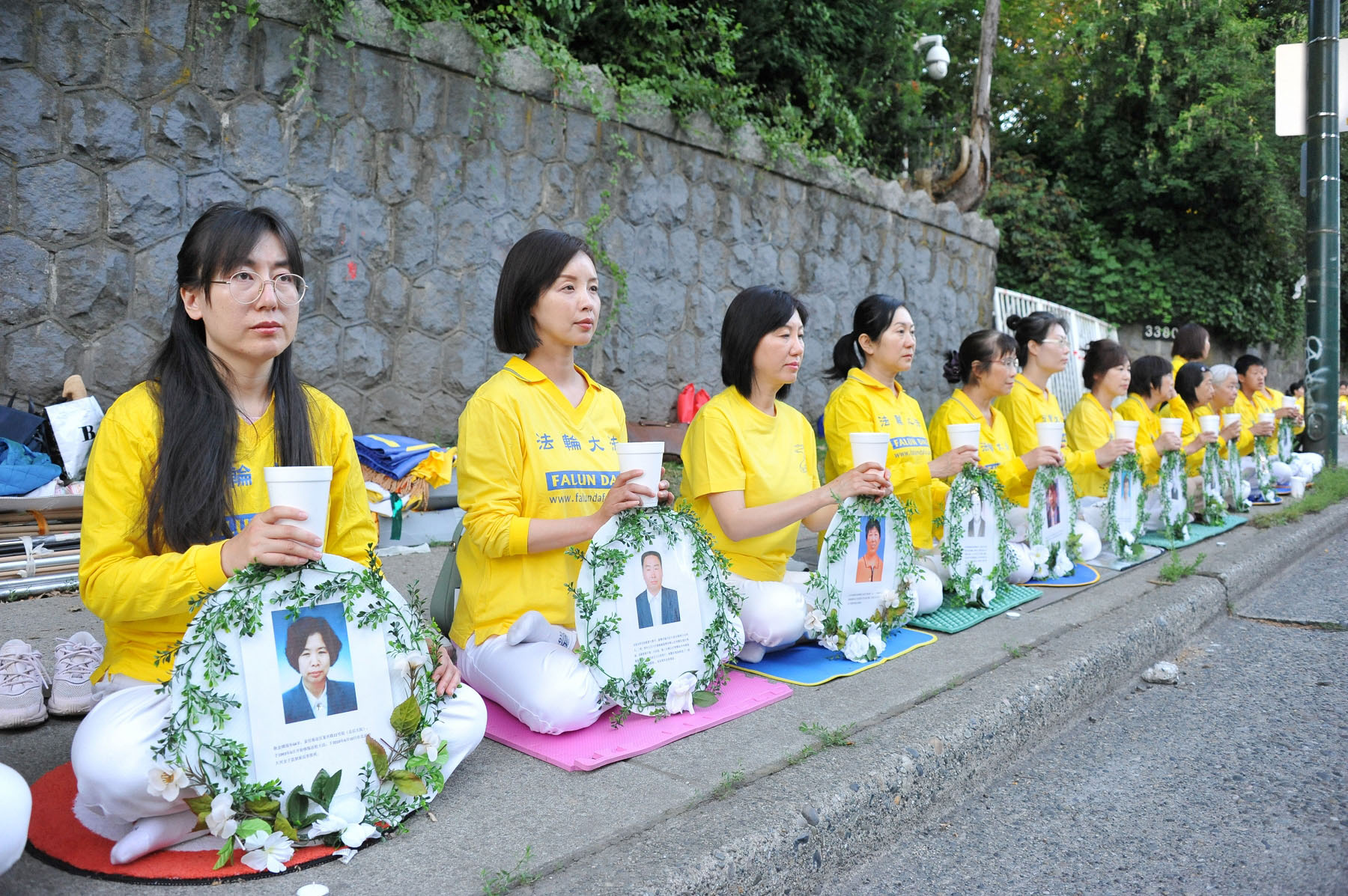 七月十四日傍晚,温哥华部分法轮功学员在中领馆前举行和平抗议,烛光悼念二十五年来被中共迫害致死的法轮功学员。他们打出横幅“法轮功反迫害25周年远离邪恶选择善良”,呼吁世人远离中共,选择正义良知。