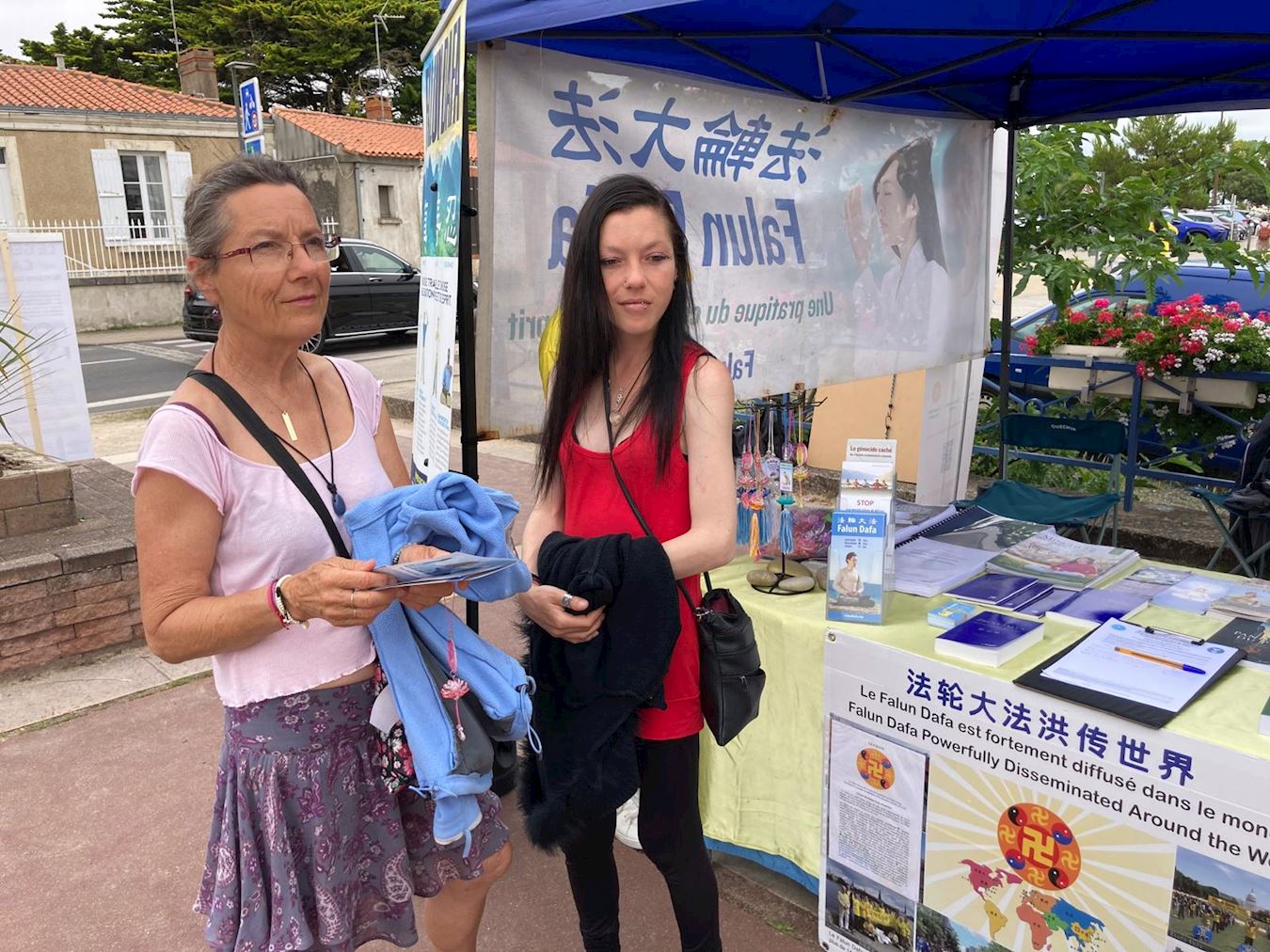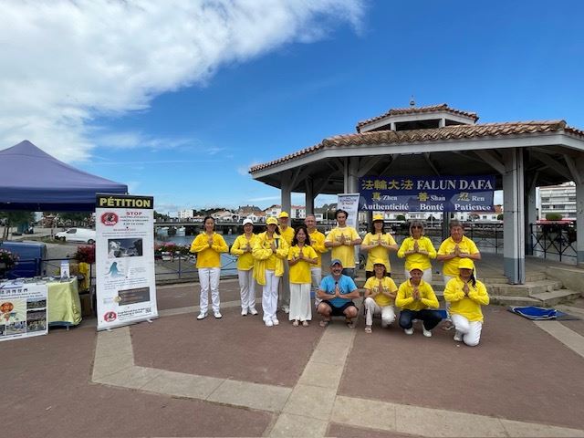 【明慧网二零二四年七月二十四日】位于法国旺戴(Vendée)的海滨小镇圣吉勒-克鲁瓦德维(Saint-Gilles-Croix-de-Vie),以其重要的渔港而闻名。二零二四年七月二十日星期六,是反对中共迫害法轮功二十五周年的日子,法国西部地区的法轮功学员当天在圣吉勒-克鲁瓦德维设置了一个真相资讯台,向人们介绍法轮功,揭露中共对法轮功学员持续至今长达二十五年的残酷迫害。
