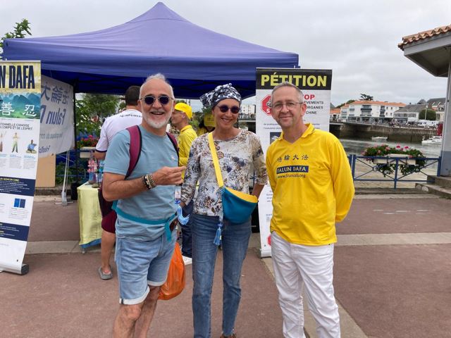 一对来自昂热(Angers) 的退休夫妇在圣吉勒-克鲁瓦德维度假,他们对法轮大法提倡的“真、善、忍”价值观表示赞赏。他们在反迫害请愿书上签字,打算上法轮功网站(Falundafa.org )进一步了解。