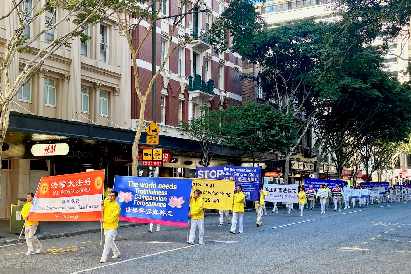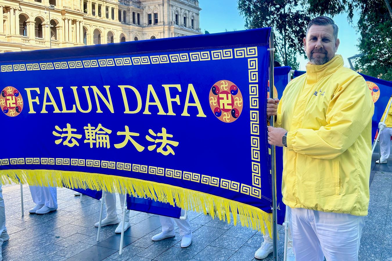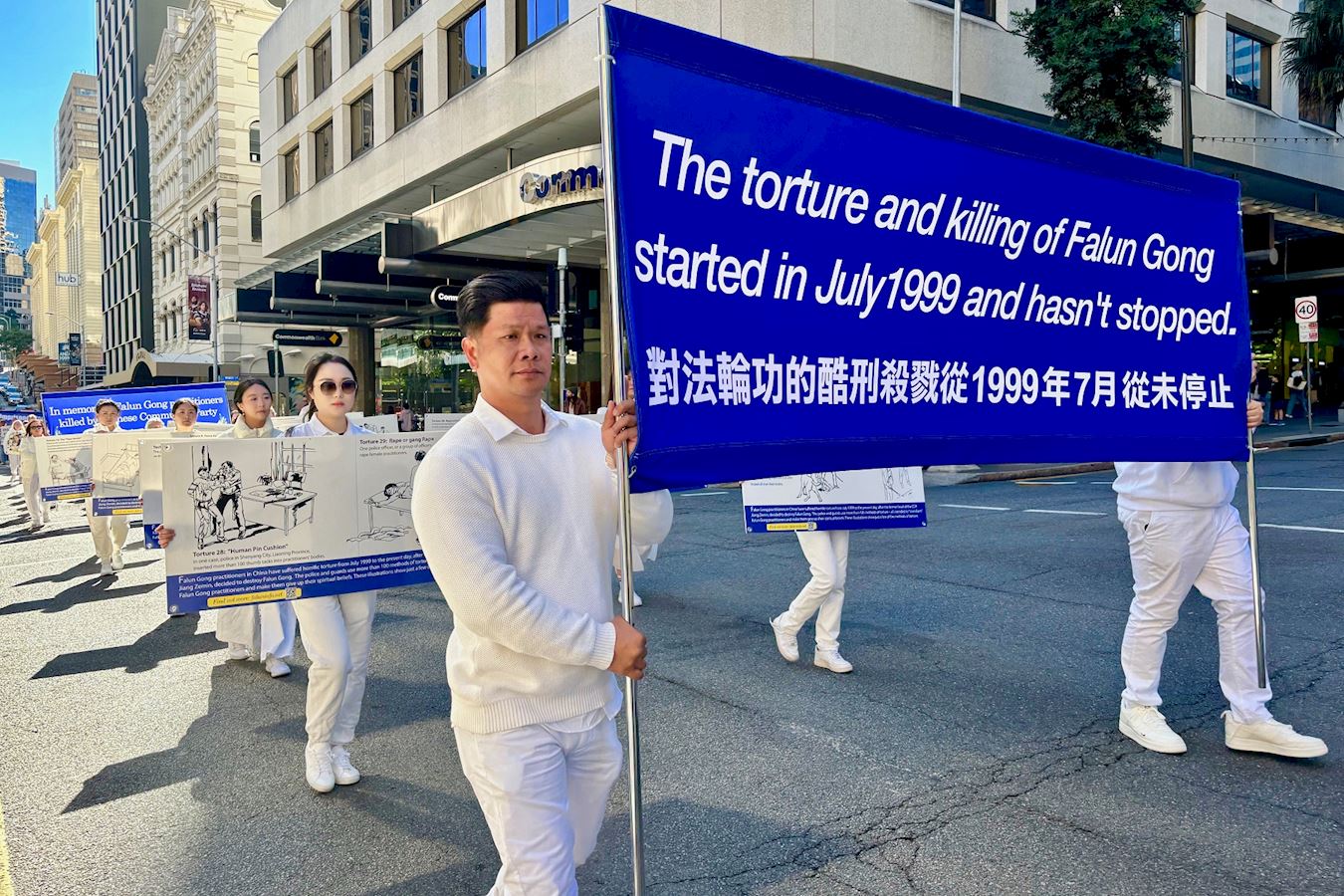 他表示:“法轮功学员仍遭受中共的迫害,法轮功学员坚守正信、和平理性的反迫害长达二十五年之久,我仍然举着横幅,走在布里斯班的街道上,坚定的表达我对中国法轮功学员的支持,谴责残暴强行活体摘取法轮功学员器官的罪行,呼吁世界上善良的人们共同制止这场迫害。”