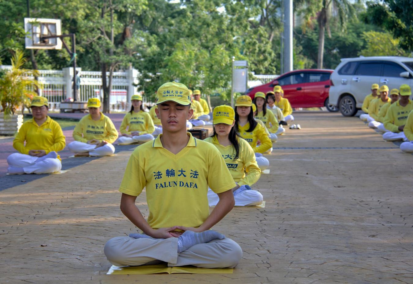 ![]() 图1~2:二零二四年七月二十日,印度尼西亚巴淡岛的法轮功学员集体炼功。 |