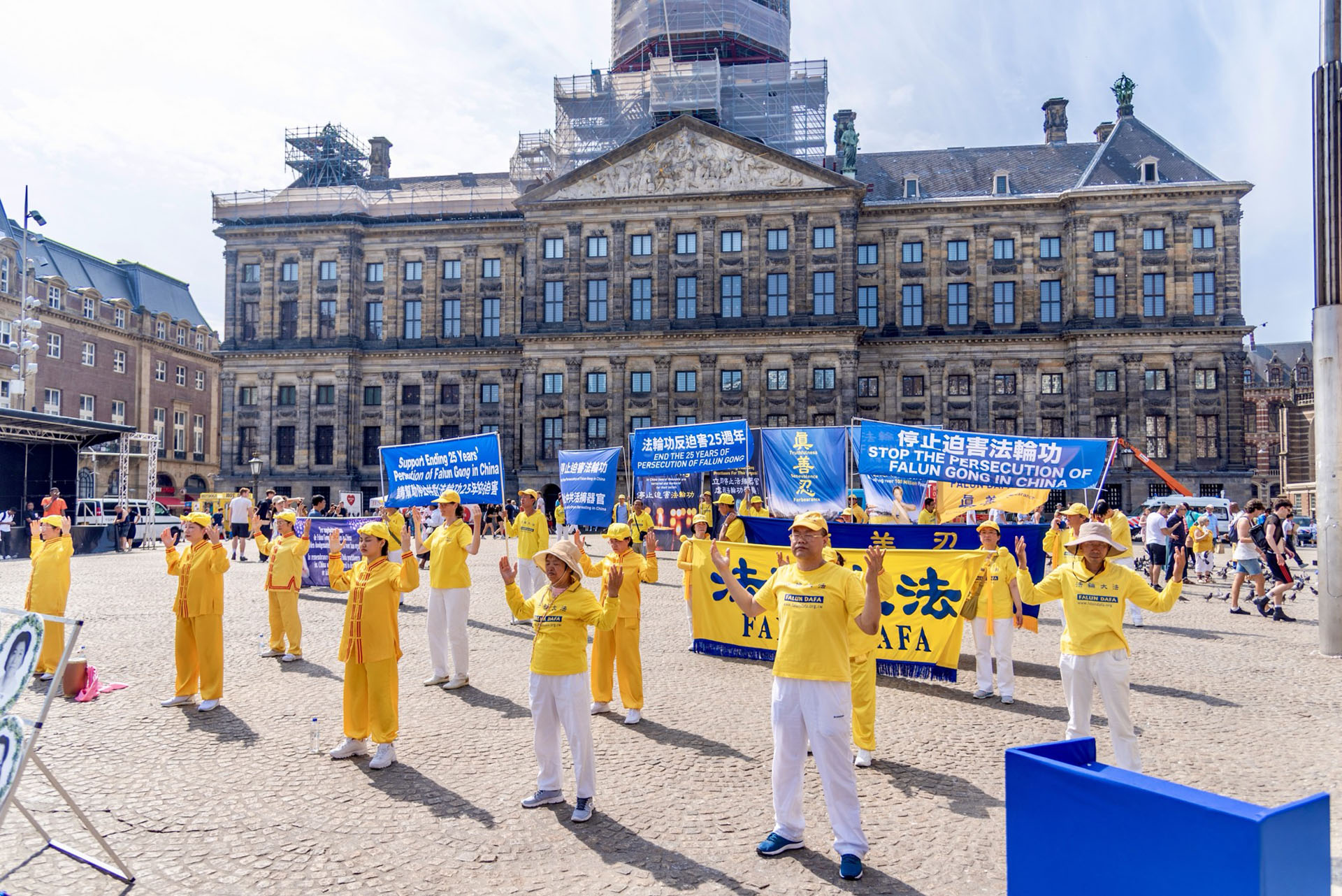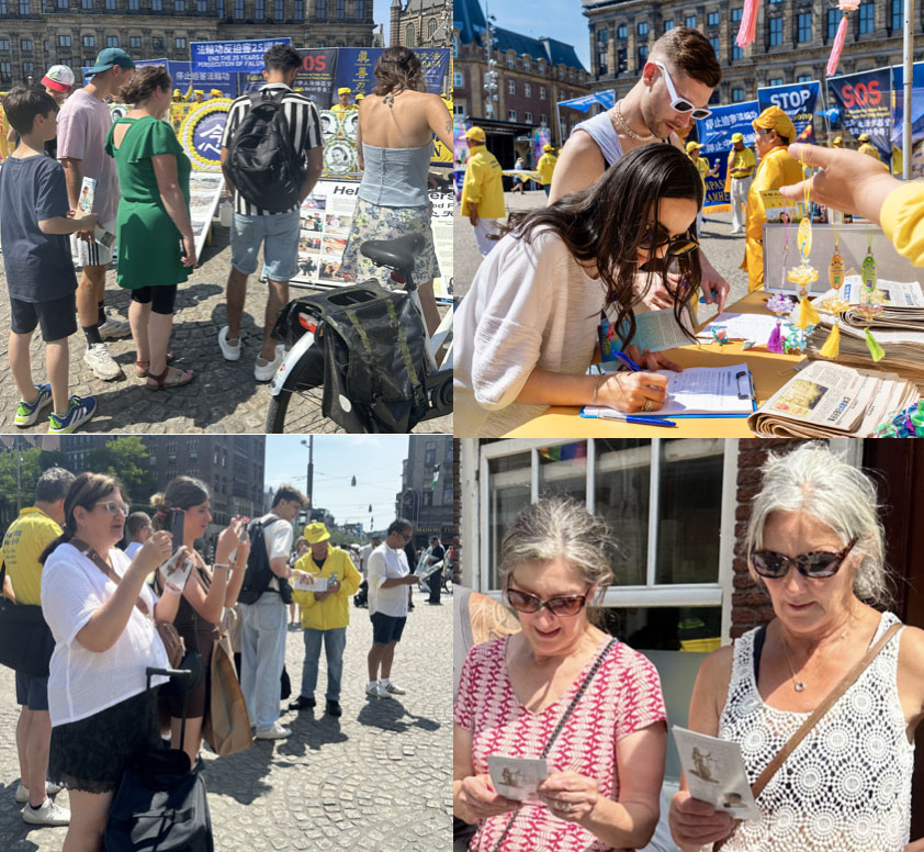![]() 图1~4:二零二四年七月二十日,法轮功反迫害二十五年之际,荷兰法轮功学员来到首都阿姆斯特丹著名的达姆(Dam)广场,举行和平抗议活动,呼吁立即停止迫害法轮功。 |