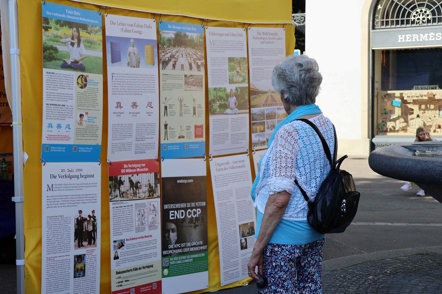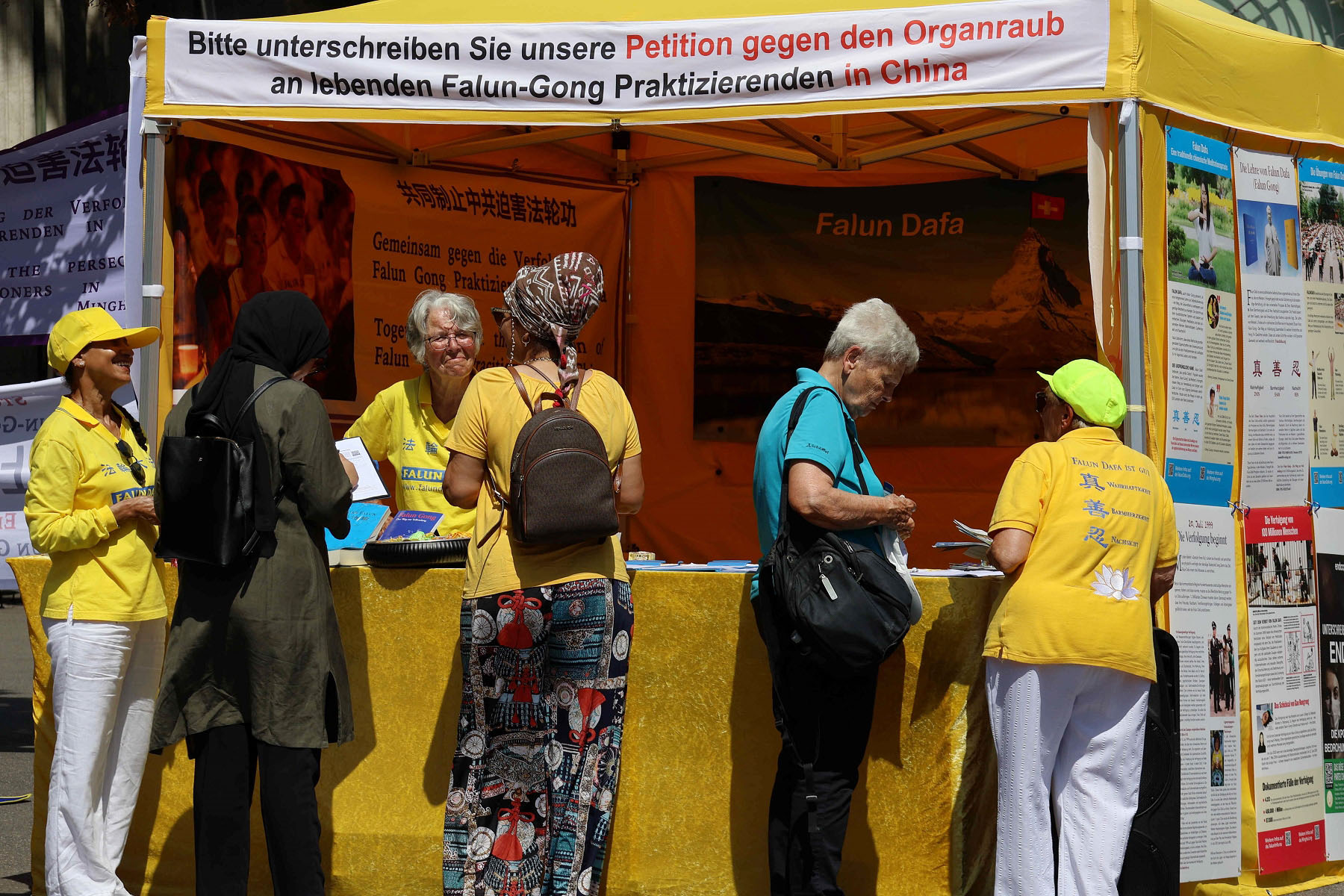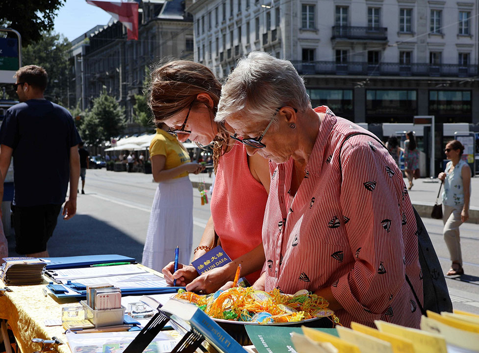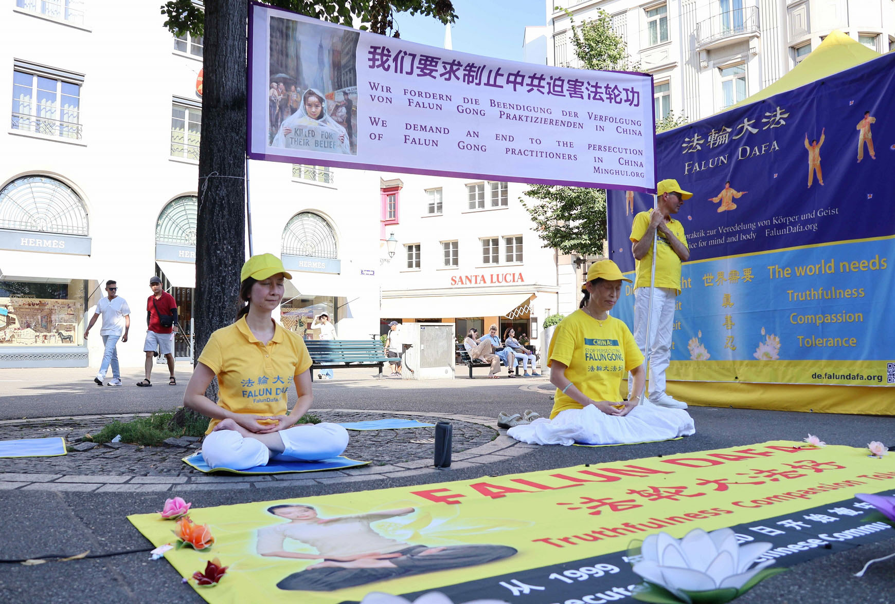 自一九九九年七月二十日至今,二十五年来,中共一直在非法关押,酷刑折磨法轮功学员,甚至活摘他们的器官,牟取暴利。因此,七月二十日前后,在世界各地都会看到法轮功学员举办的活动,呼吁制止迫害。当天,在瑞士意大利语区的卢加诺(Lugano)市中心也有同样的活动。