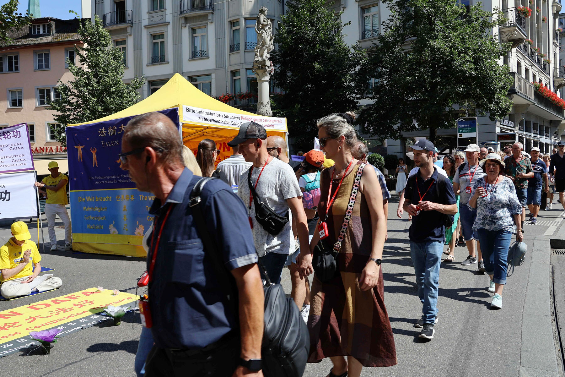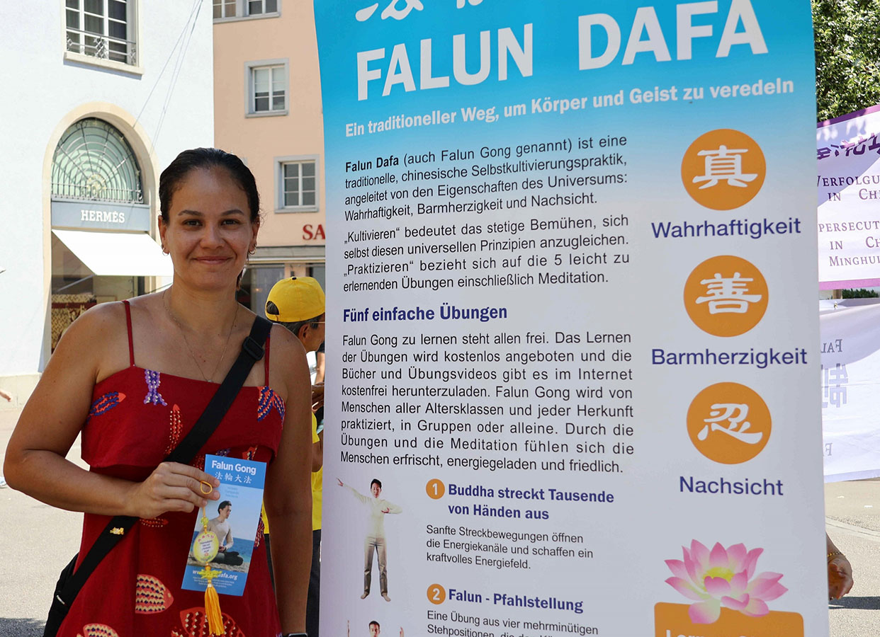 很多路人也都非常赞同法轮功学员遵循的真、善、忍。来自瑞士东部的锁匠米歇尔·加拉蒂(Michel Gallati)谈到:“真、善、忍是基本准则,是我们每个人都需要的特性,不论我们来自哪里。这是我们整个社会,每个阶层都应该拥有的。”