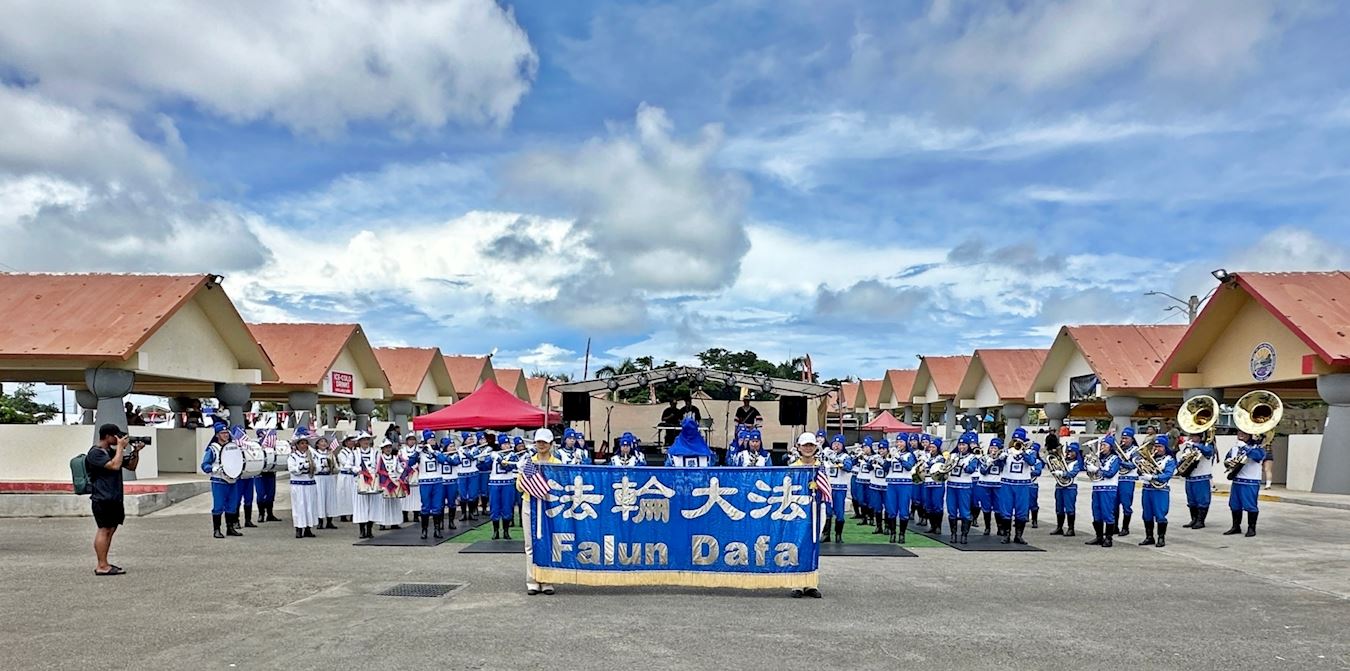 游行活动结束后,天国乐团在下午前往附近的查莫洛夜市旁,巴西欧公园(Chamorro Village / Paseo de Susan Park)的关岛解放八十周年纪念日晚会现场。天国乐团先在副舞台前演出《法轮大法好》等触动人心的歌曲后,接着到主舞台前表演二首进行曲后,再游行前往公园路。
