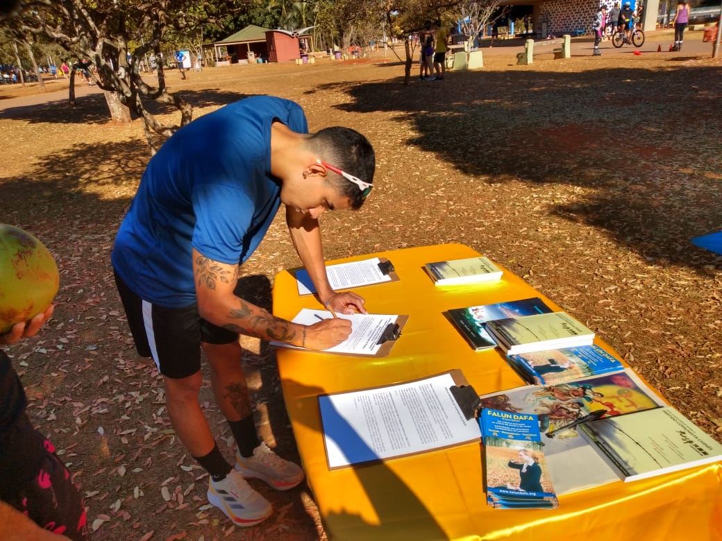 大卫·格拉巴拉(Dawid Grabara)是一位印尼青年,他跟朋友瓦伦尔(Valenr)了解了中共活摘法轮功信仰者器官的罪恶之后,感到气愤和难过。一位法轮功学员告诉他们,民众的支持会减轻中共对法轮功的迫害。两个人一致决定签名支持法轮功的反迫害,在欣然接受学员赠送的小莲花后,他们又对“真善忍”三个字很感兴趣。学员告诉他们,这是法轮功修炼者必须遵循的基本原则,在日常生活中做一个诚实、善良、宽容的好人。