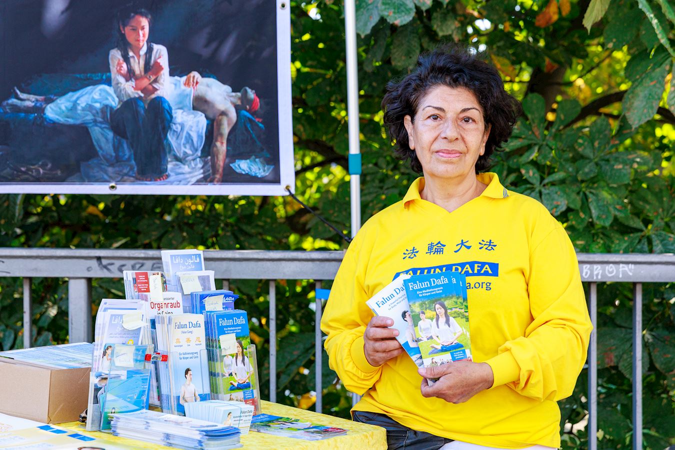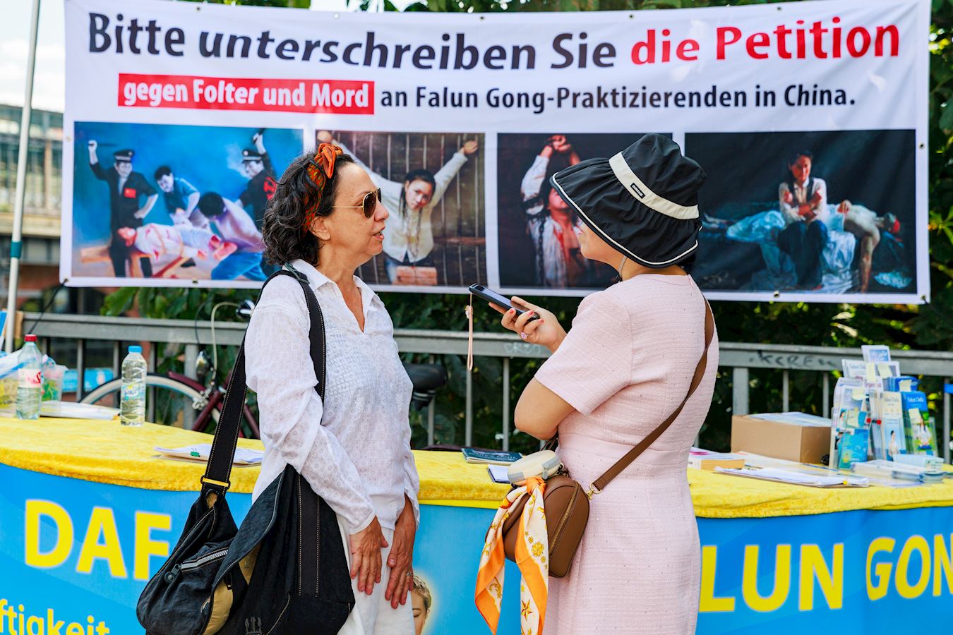 来自巴西的舞蹈艺术家西奥玛·博纳维塔(Thelma Bonavita)旅居柏林已近十年。法轮功学员炼功场景吸引了她,通过阅读资料了解到中共迫害法轮功的罪恶后,她在反迫害征签表上签名,并表示毫无疑问支持学员反迫害,因为她完全理解迫害有多严重。