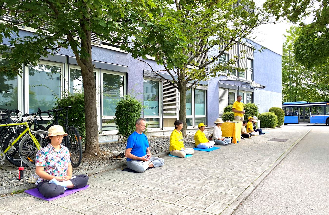 ![]() 图2:二零二四年七月十八日,法轮功学员在慕尼黑中领馆对面举办反迫害二十五周年活动。 |