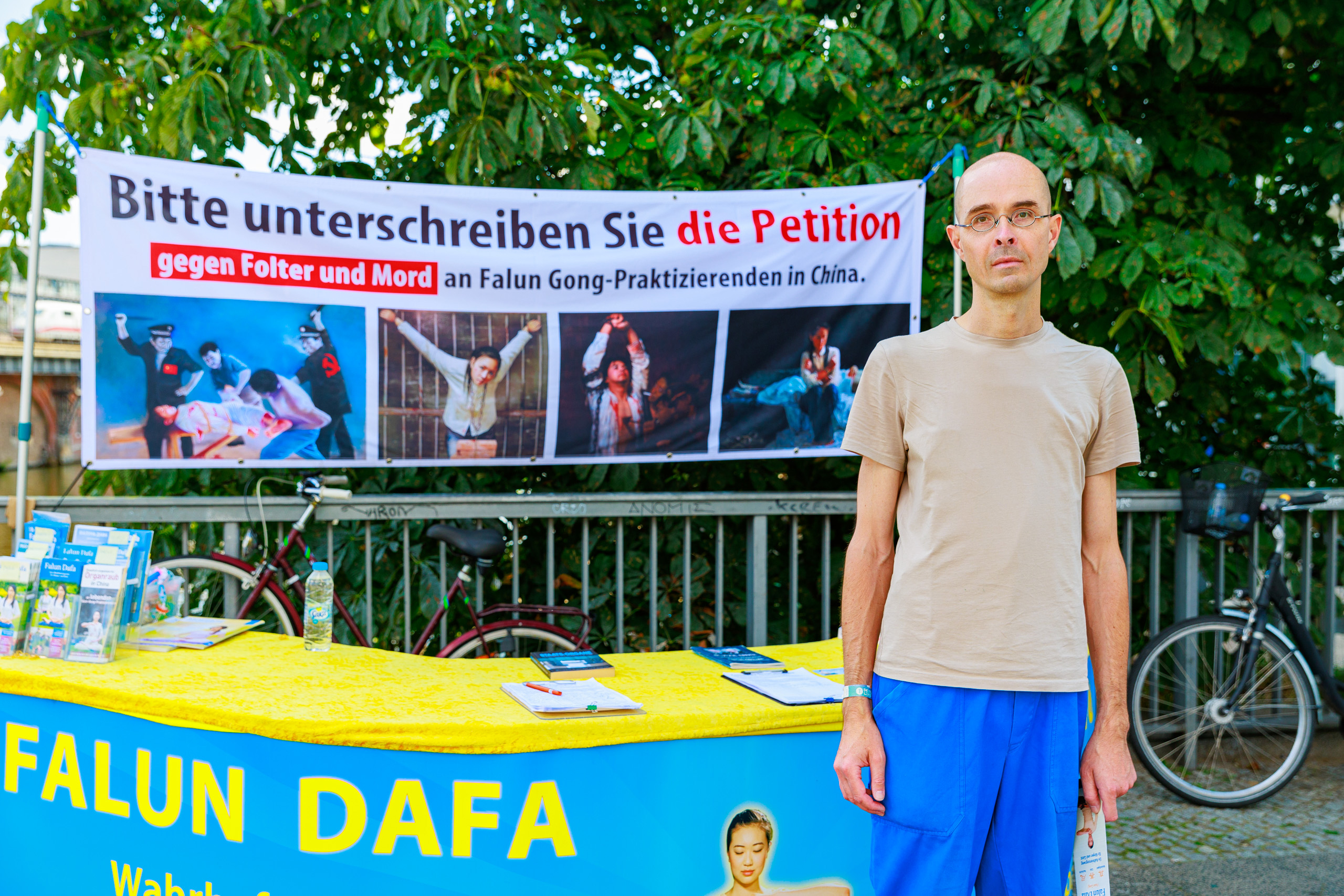 远道而来的德国法轮功学员安德利亚斯(Andreas)表示自己很乐意能来参加这次活动,“这也是实践真、善、忍和制止中共迫害的方式。”