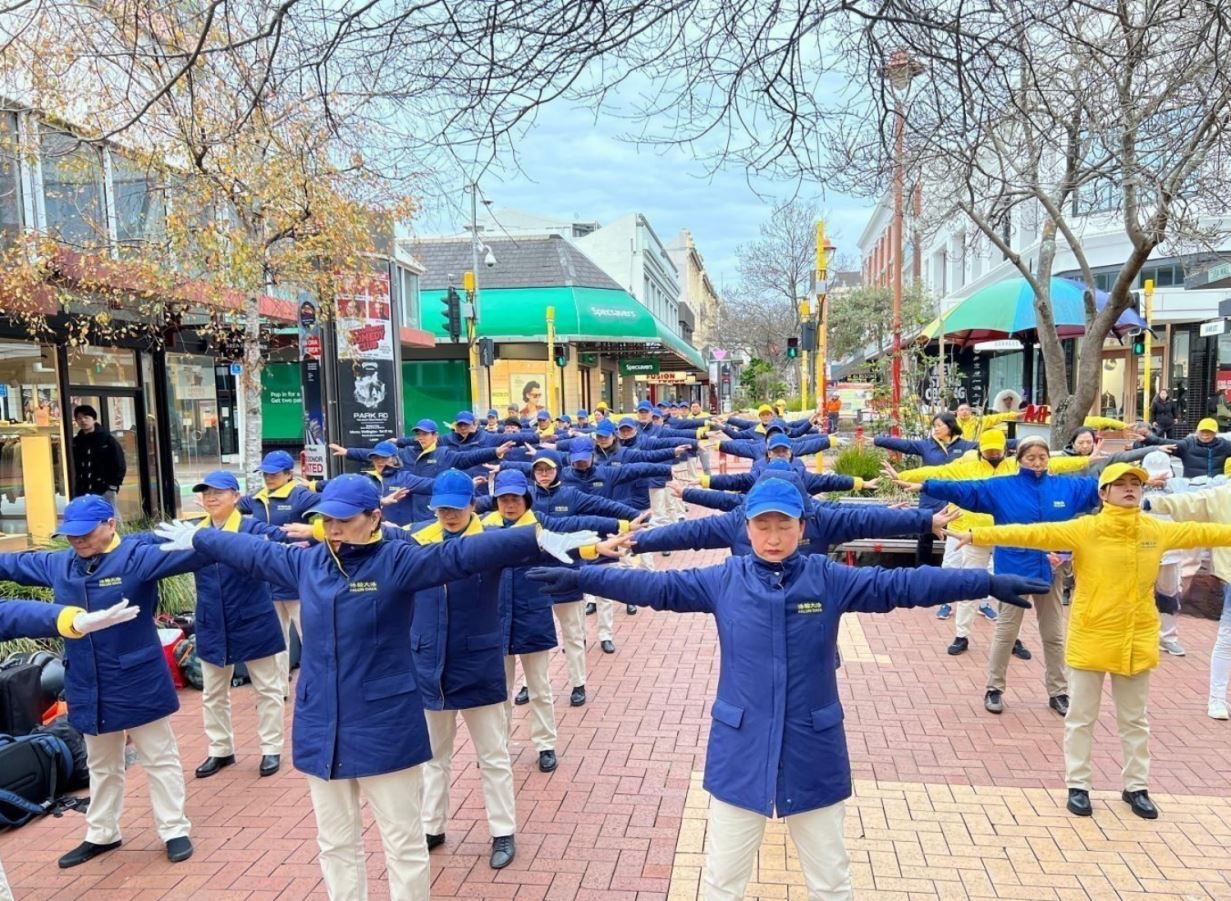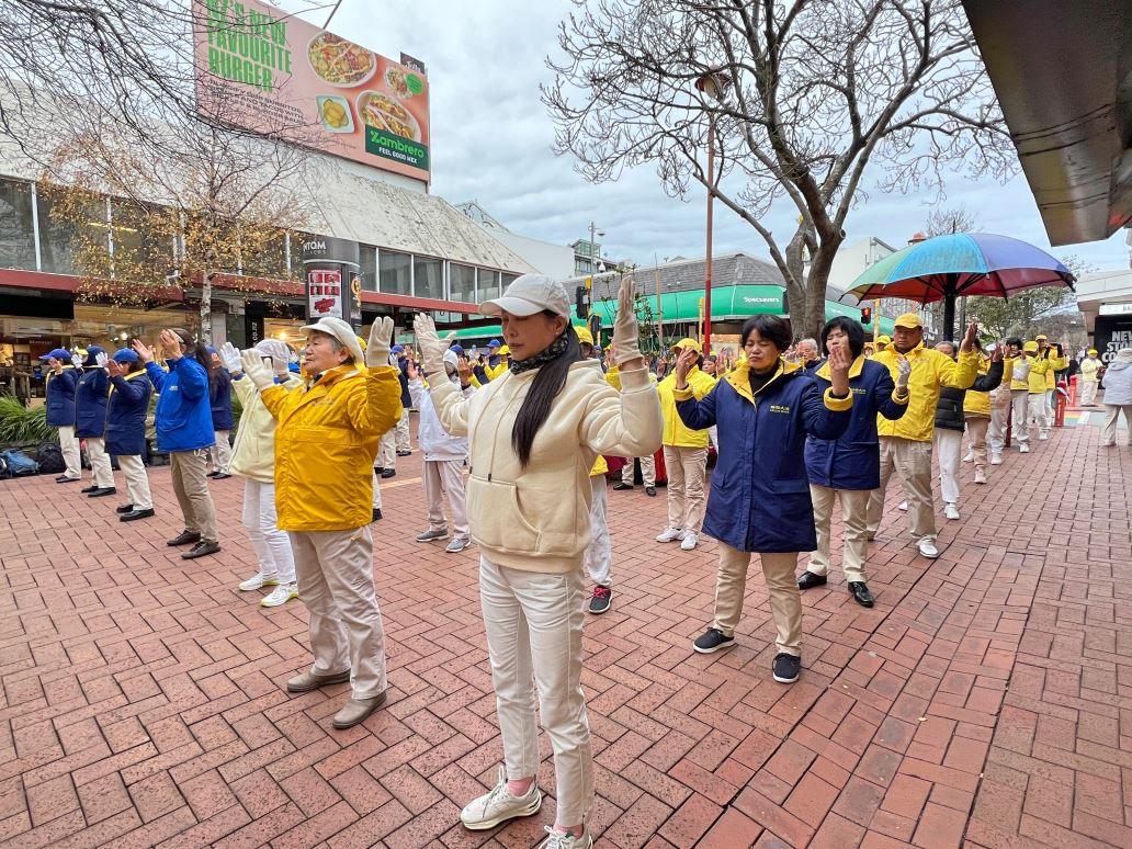 ![]() 图1~3:二零二四年七月二十三日,法轮功学员在新西兰首都惠灵顿市中心古巴街炼功。 |