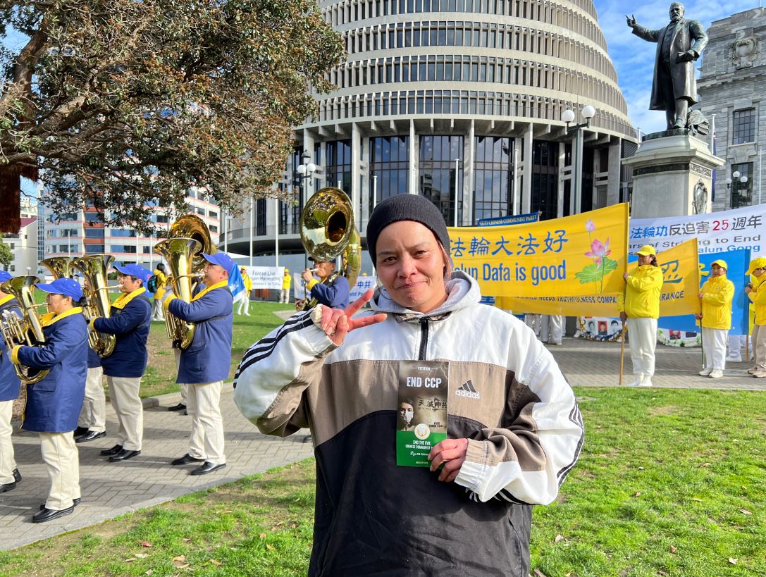 佩卡哽咽地说:“我为经历迫害的法轮功学员感到非常抱歉。感谢你们今天在这里(举行活动)。我希望你们都能得偿所愿,迫害的现状能够得到扭转。我也希望在新西兰我们能保护你们、保障你们的安全。”