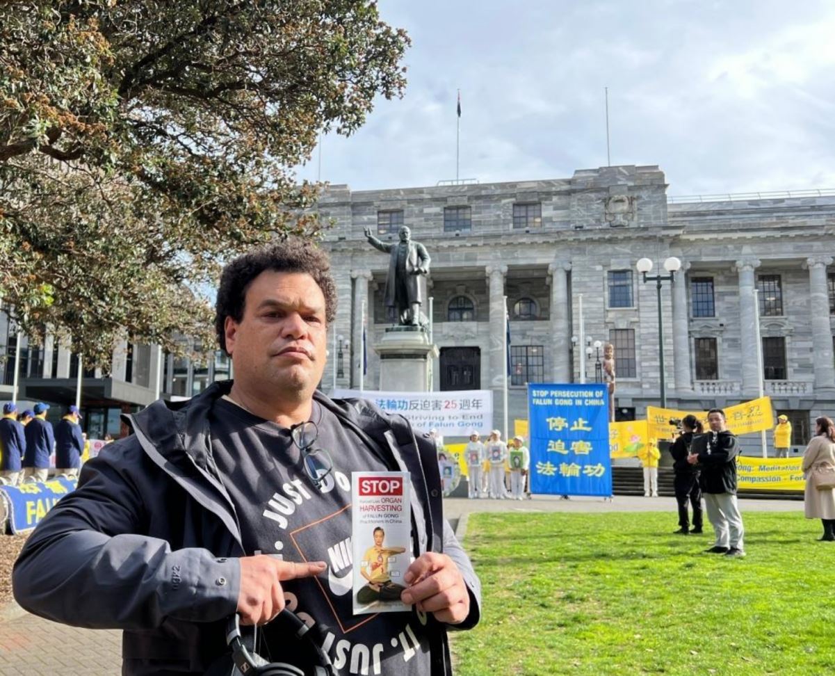 他表示中共迫害法轮功多年,甚至活摘器官,这令人作呕、令人震惊。同时,他感到很幸运,身处在新西兰这个民主国家。他表示会从自身做起,也想对所有新西兰人说:“帮助这些人(法轮功学员),记住他们的故事,要有同情心、善意。”