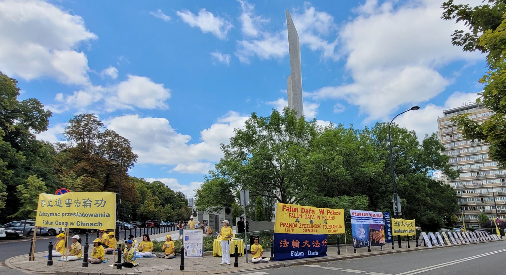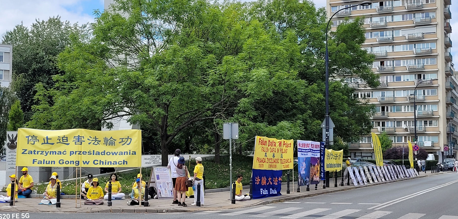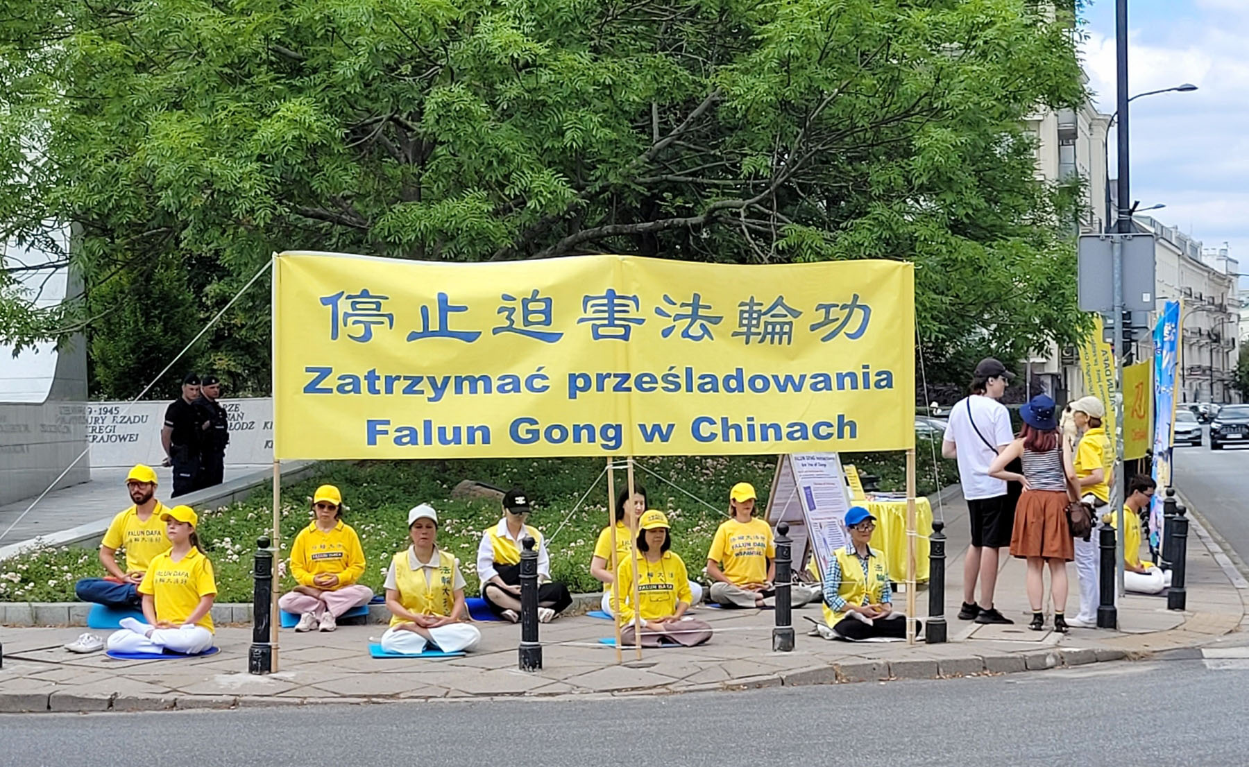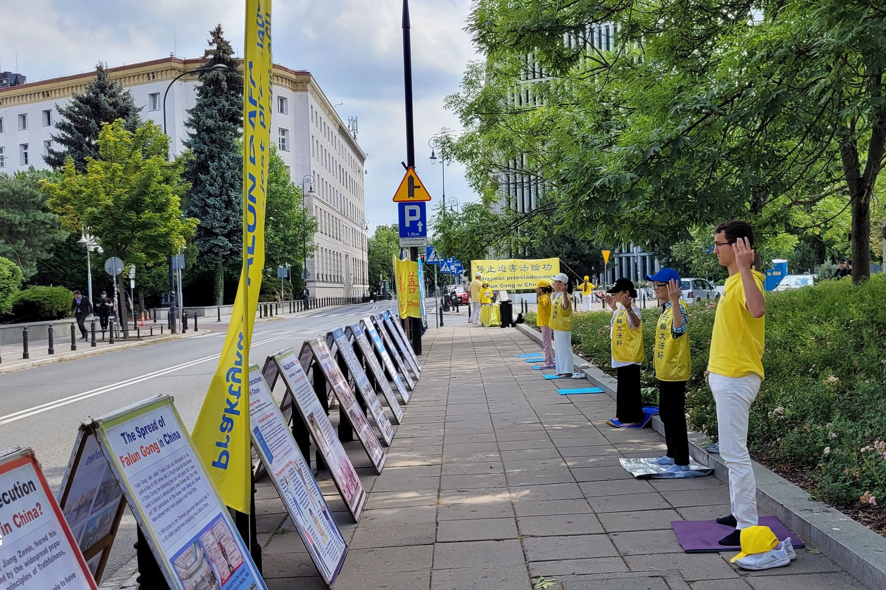 学员在议会楼前集体炼功,发传单,讲真相及反迫害征签。醒目条幅及大量展板,受到波兰议员及民众的关注。活动现场有议员与法轮功学员长时间交谈了解真相,有波兰媒体现场采访学员,有民众现场购买《转法轮》。大家强烈谴责中共以国家之名迫害人权的不齿恶行,指出:活摘器官牟利行径是波兰奥斯维辛纳粹集中营都望尘莫及的种族灭绝暴行。