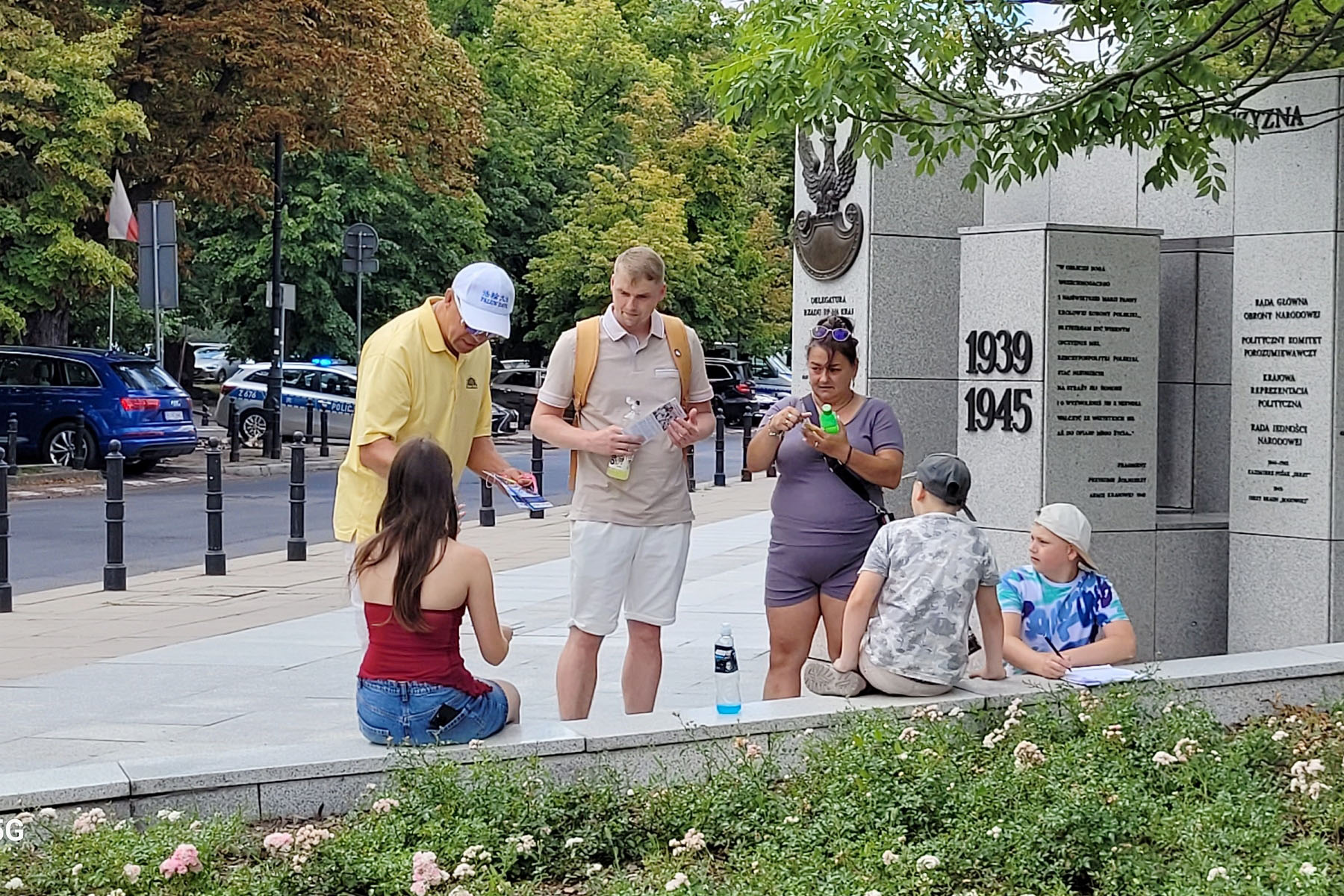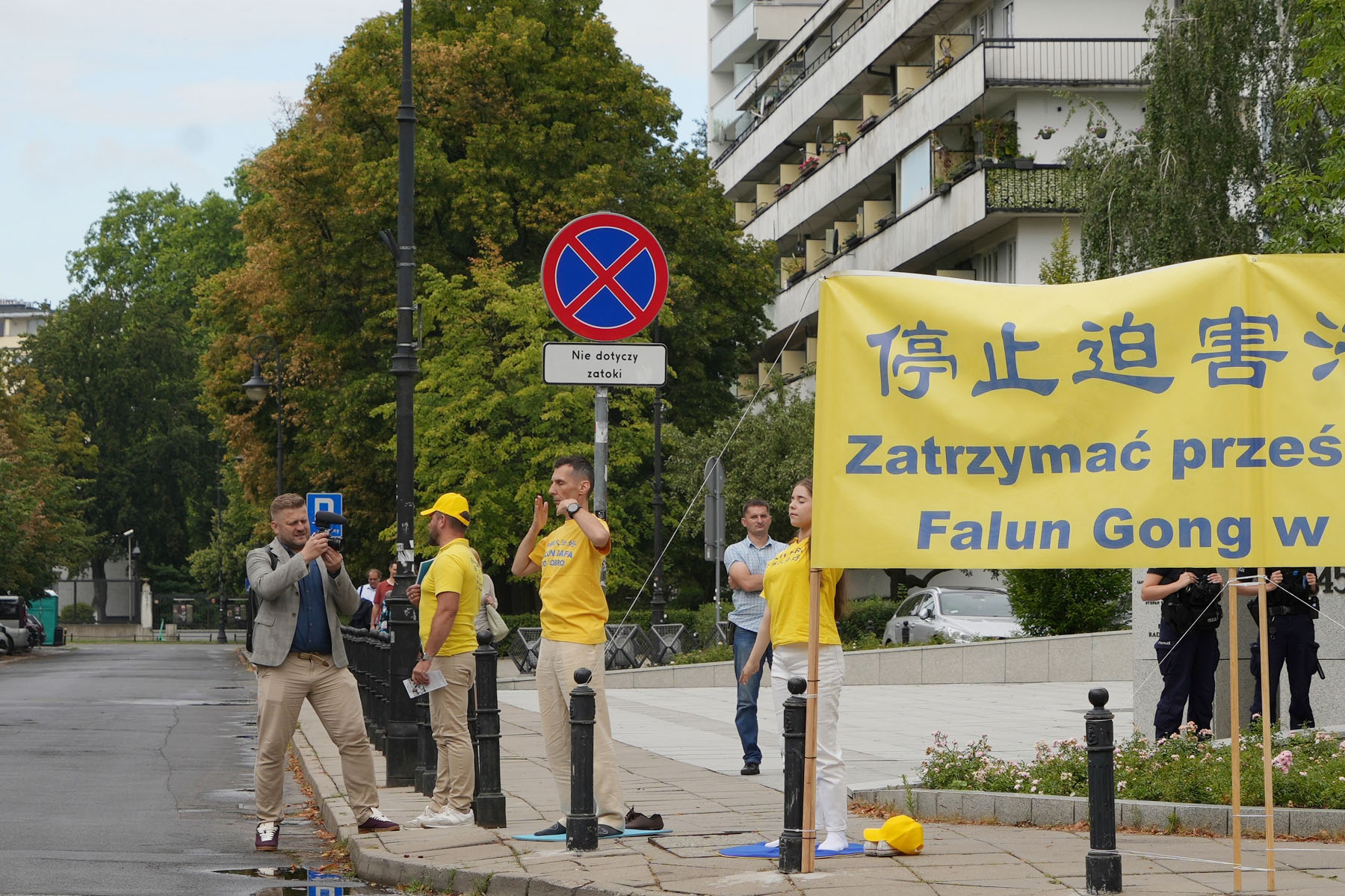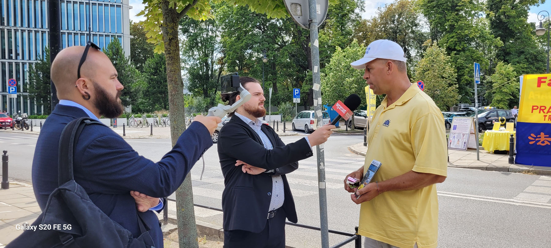 ![]() 图7:波兰媒体采访法轮功学员。 |
