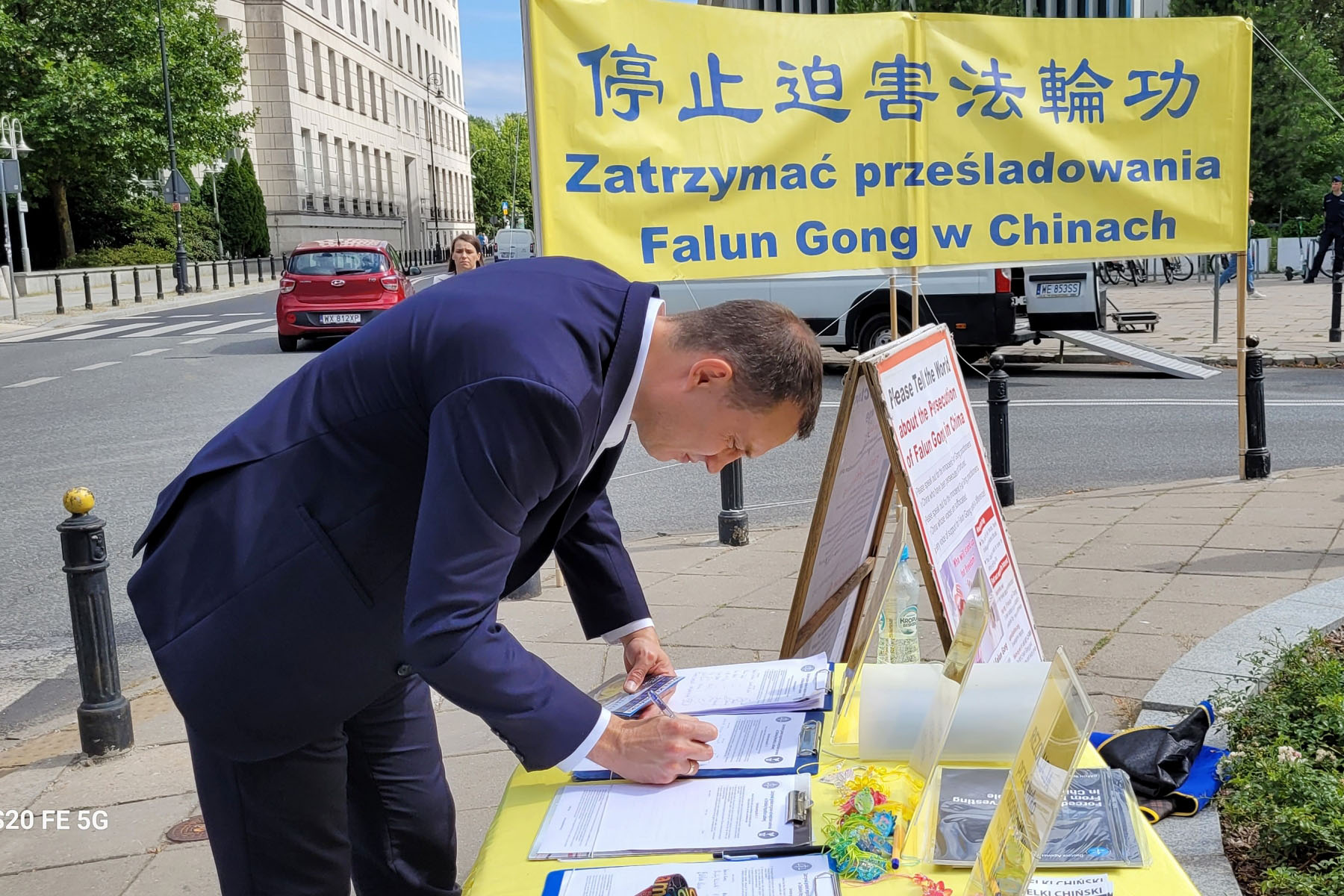 多名波兰议员路过法轮功集会现场时,主动与法轮功学员长时间交谈,详细了解法轮功真相,并主动在《制止中共活摘良心犯器官》的征签表上签名;还有议员在了解真相的当天就向波兰议会递交了波兰《需要批准欧盟反对人体器官贸易的第216号条约》提案。
