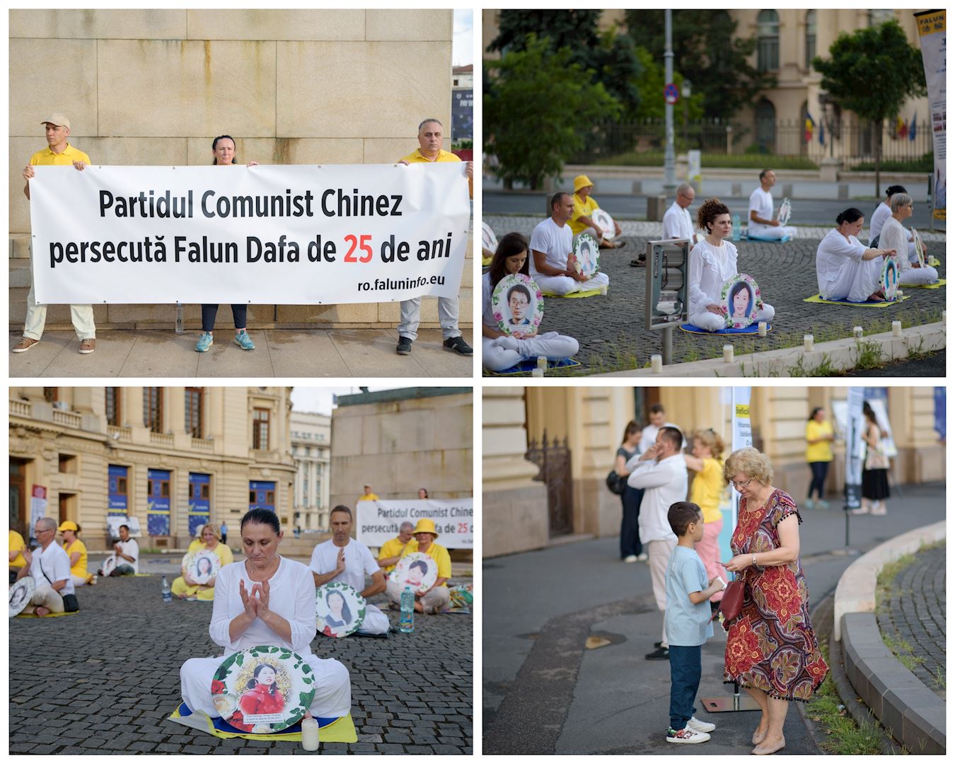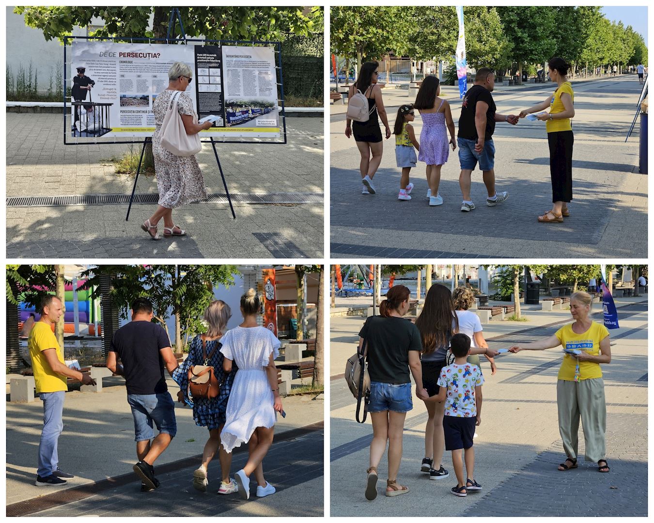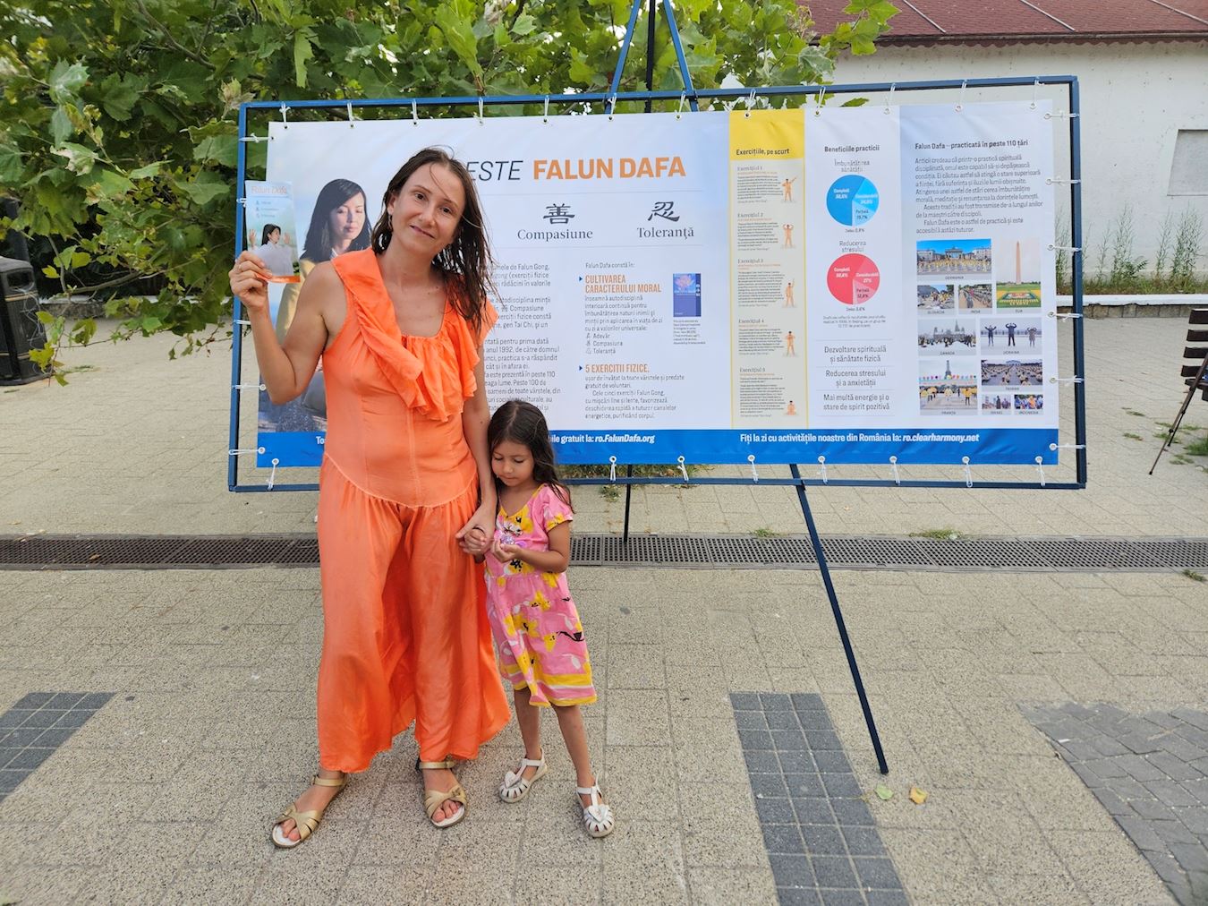 一位四十多岁的女士与朋友路过活动现场,她已经知道法轮大法好几年了,她很高兴法轮功在罗马尼亚得到传播,她还询问了有关炼功点的更多信息。中共对法轮功的迫害还在持续,这让她感到非常难过,她告诉学员“要继续努力坚守信仰”。