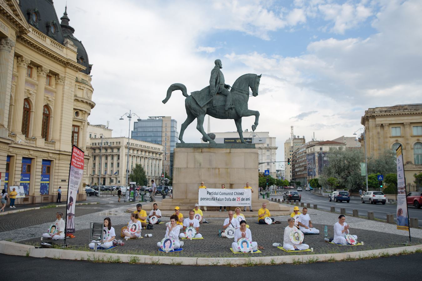 七月十九日,布加勒斯特,两位女士第一次听说法轮功,她们对学员们所遭受的迫害和活摘器官的真相所震惊,她们询问如何才能制止这些罪行。