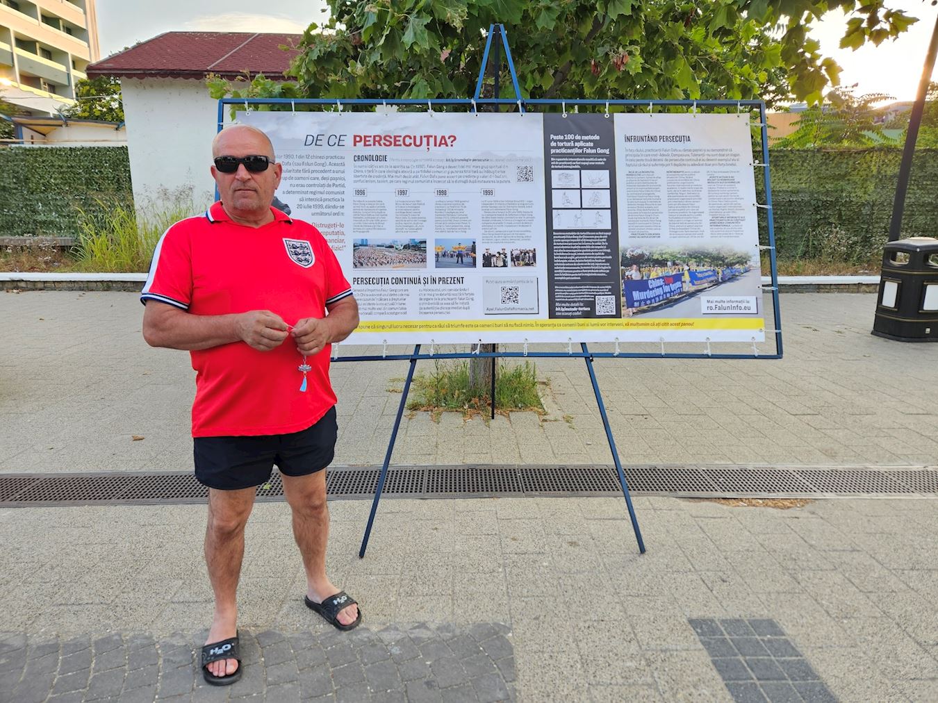 弗洛林·普莱尚(Florin Pleşan)今年五十七岁,是一位管理员,此前曾在英国见过法轮功学员举办的活动,但没有详细去了解。学员向他讲述了很多真相信息,弗洛林觉得很受益,他认为基于真、善、忍的生活方式对人们有好处:“这是健康的原则,法轮大法所弘扬的真、善、忍给日常生活带来的好处。”谈及中共的迫害时,弗洛林强调:“(这是)种族灭绝!”