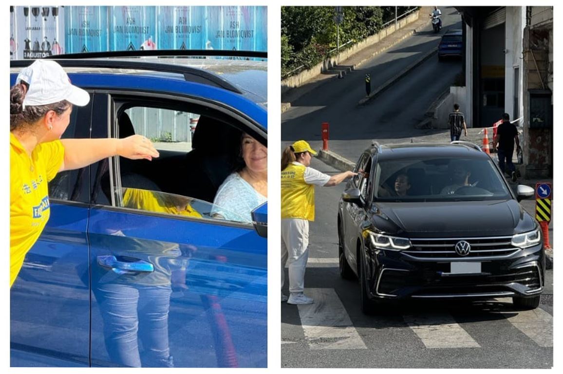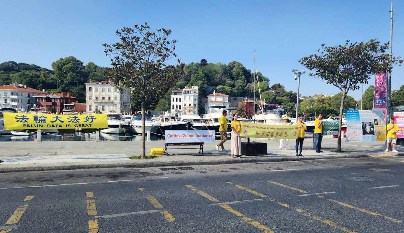 七月十九日,学员们在中共领事馆前举行和平集会,要求中共停止这场持续二十五年的迫害,当时是上班的早高峰,伊斯坦布尔人在开车经过时,纷纷鸣响车笛、鼓掌,并用土耳其人特有的方式对法轮功学员表示支持。