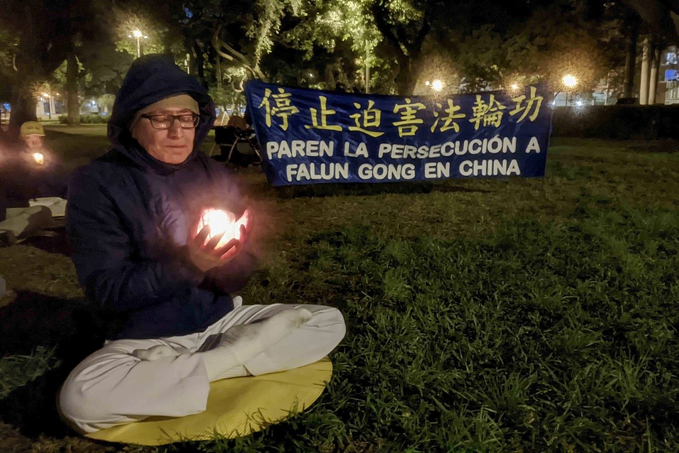 傍晚时分,法轮功学员在中共大使馆前的阿方索乌加尔特公园举行烛光夜悼。在夜悼过程中,警察和市政人员纷纷前来了解真相。