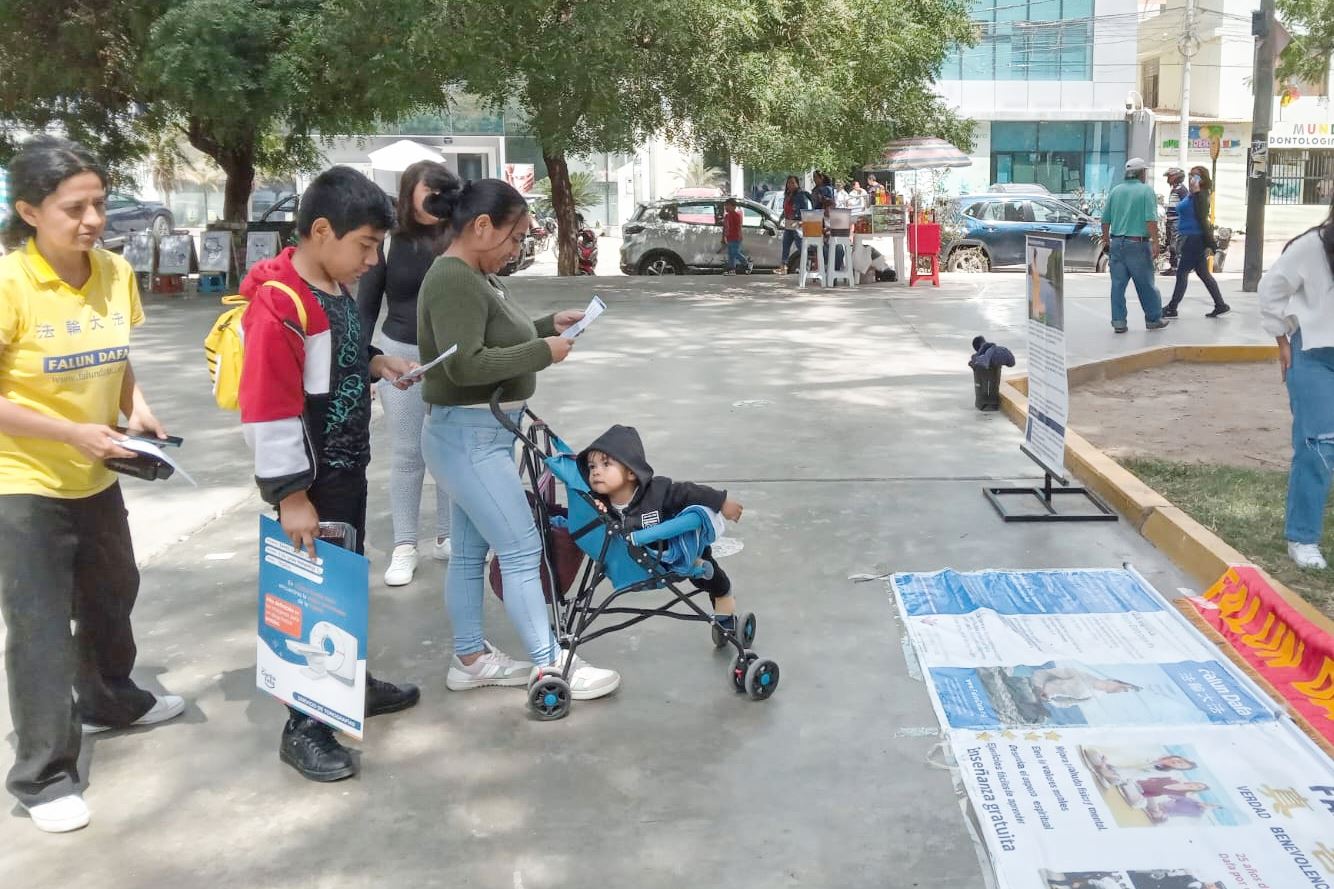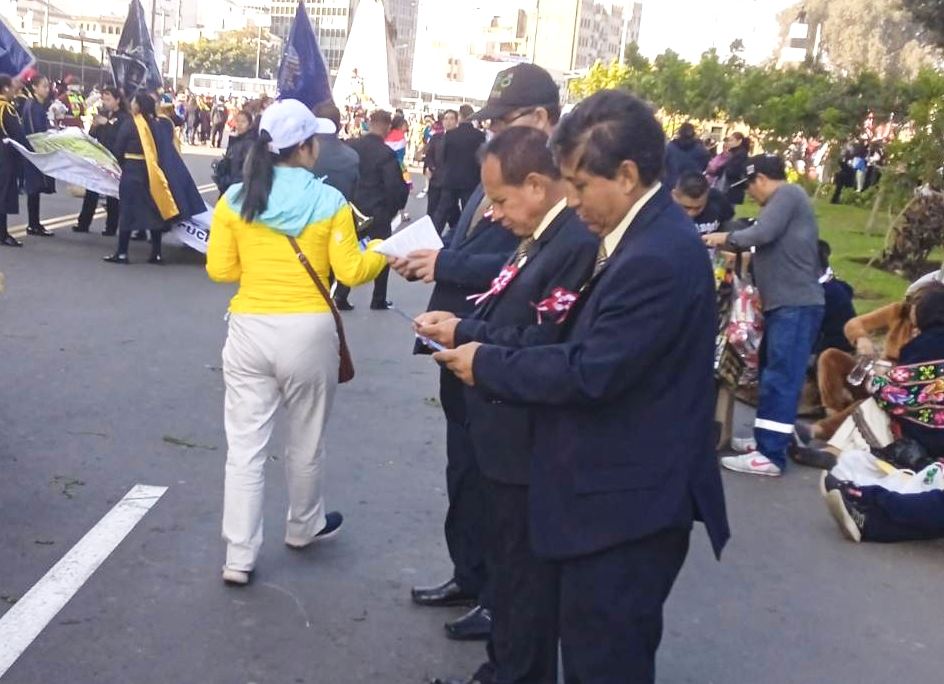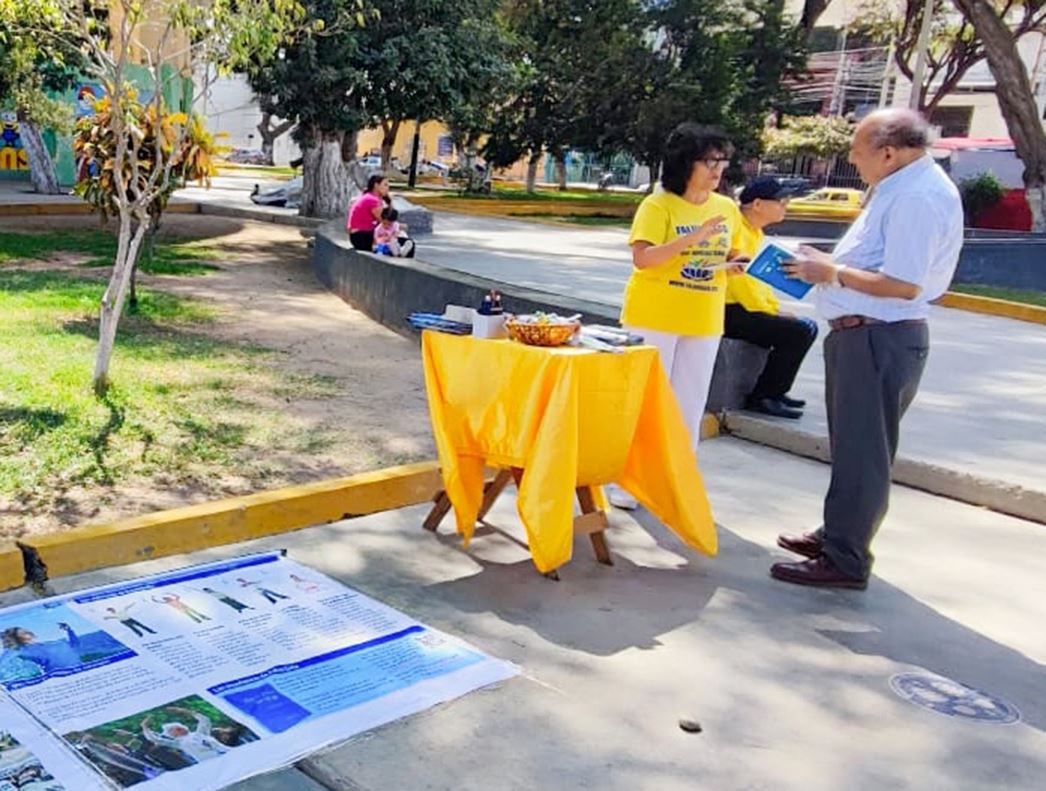 在首都利马,法轮功学员在城市的主要街道举行弘法传真相活动。学员们还在繁忙的商业中心向路人分发真相资料。