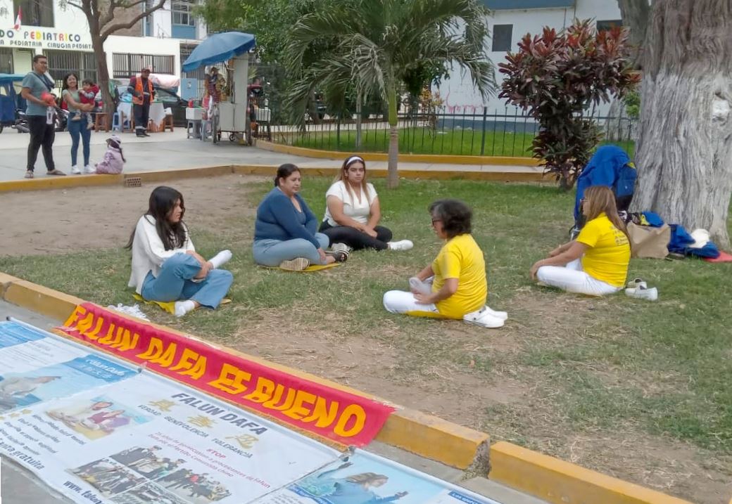 七月二十日,法轮功学员也在利马北部的皮乌拉市举办了讲真相活动。学员们在市中心广场对面的“鸽子公园”向市民演示功法。不少民众看到法轮功学员祥和的炼功场面,前来学功。