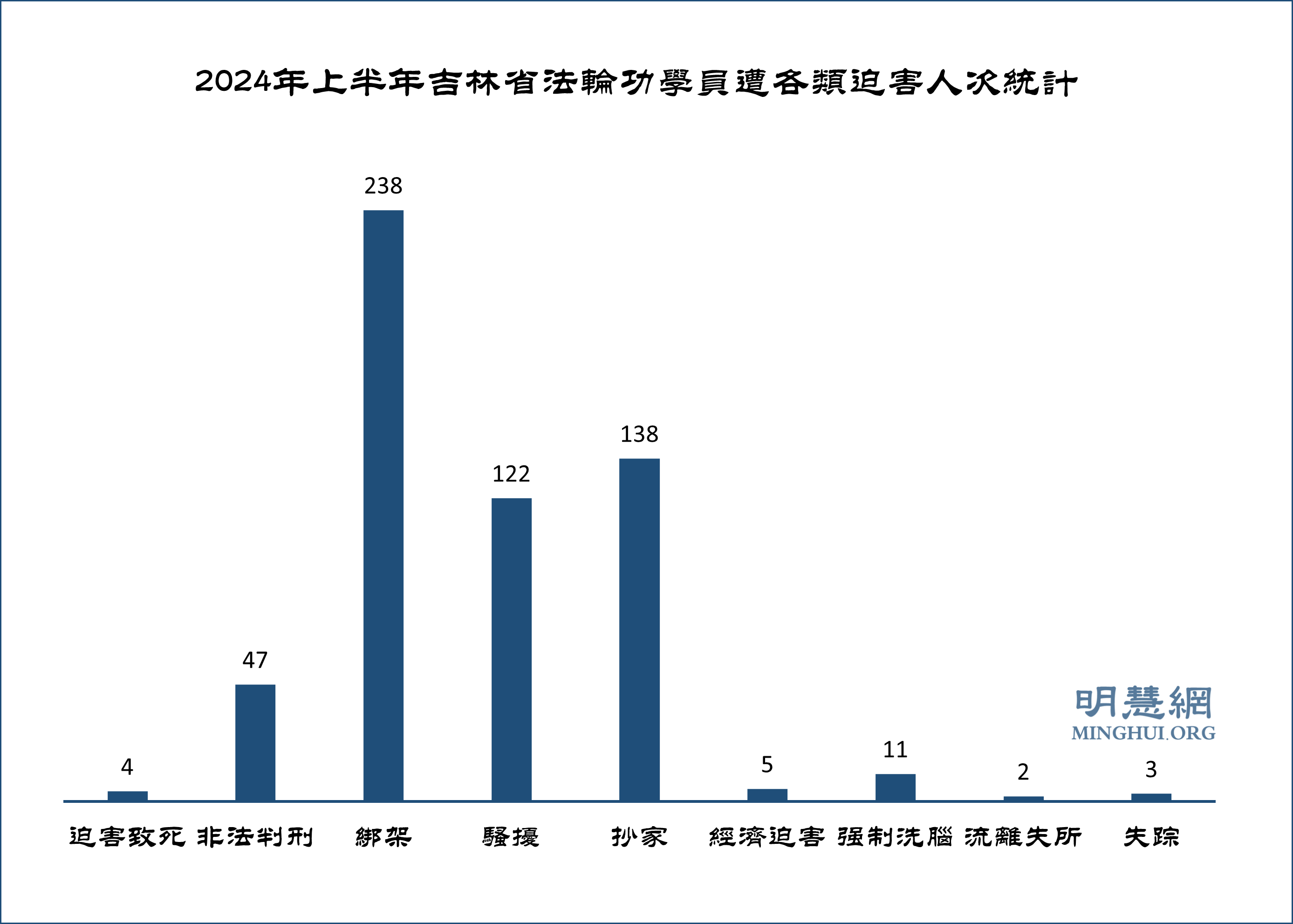 ![]() 图2:2024年上半年吉林省法轮功学员遭各类迫害人次统计 |