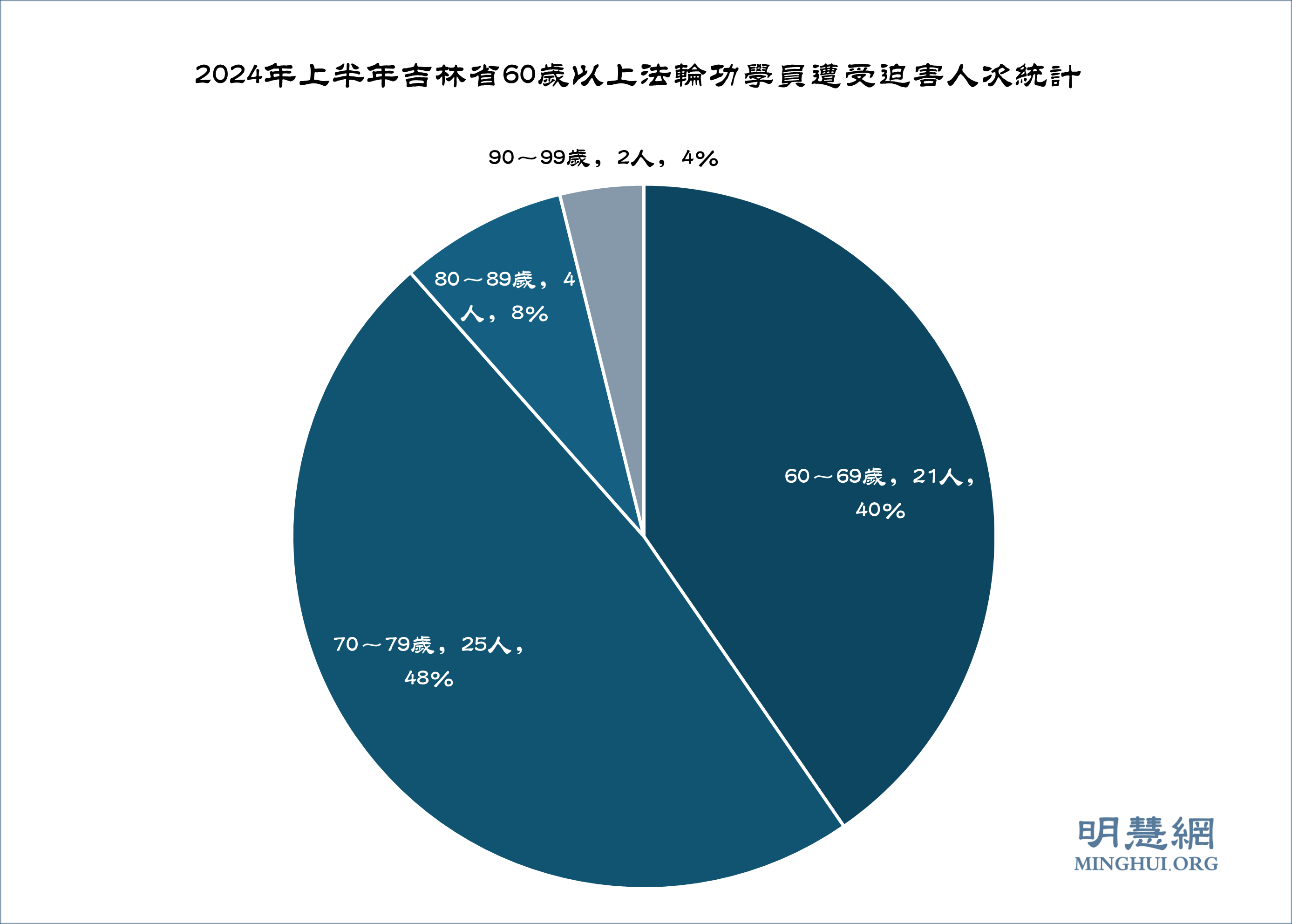 ![]() 图3:2024年上半年吉林省60岁以上法轮功学员遭受迫害人次统计 |