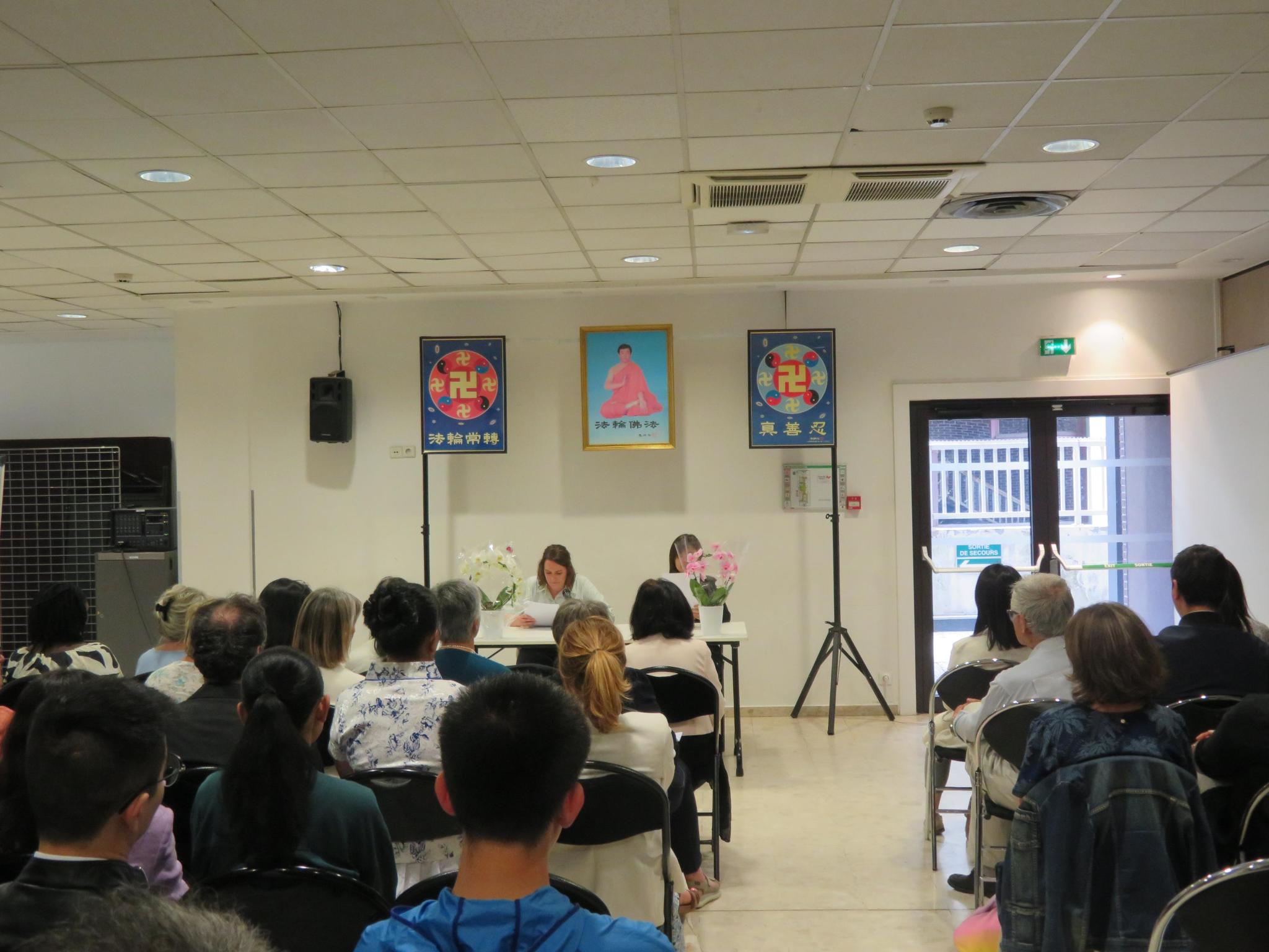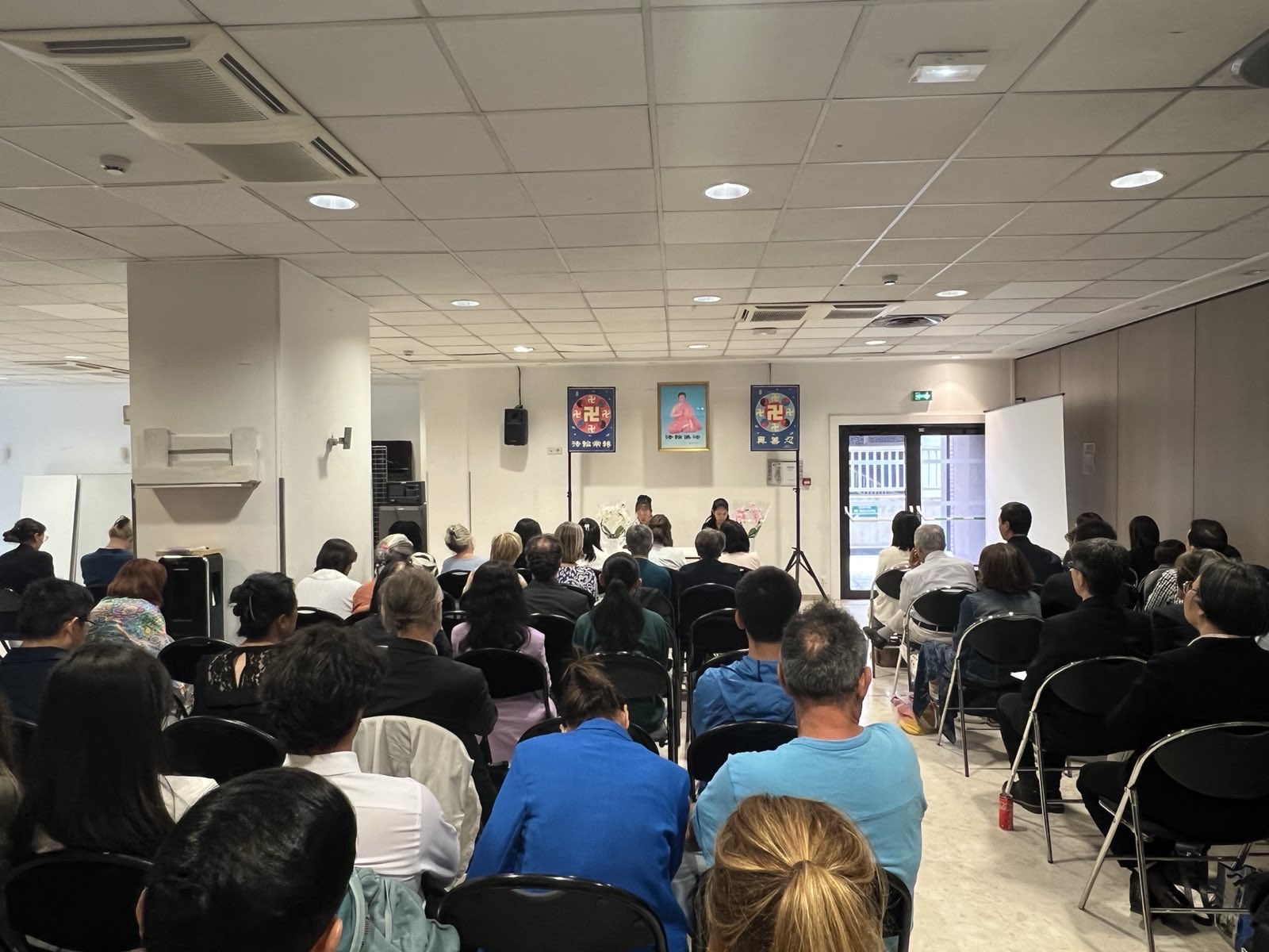 ![]() 图1~2:学员交流了二零二四年在推广与跟随神韵艺术团在法国巡演过程中的修炼体会 |
