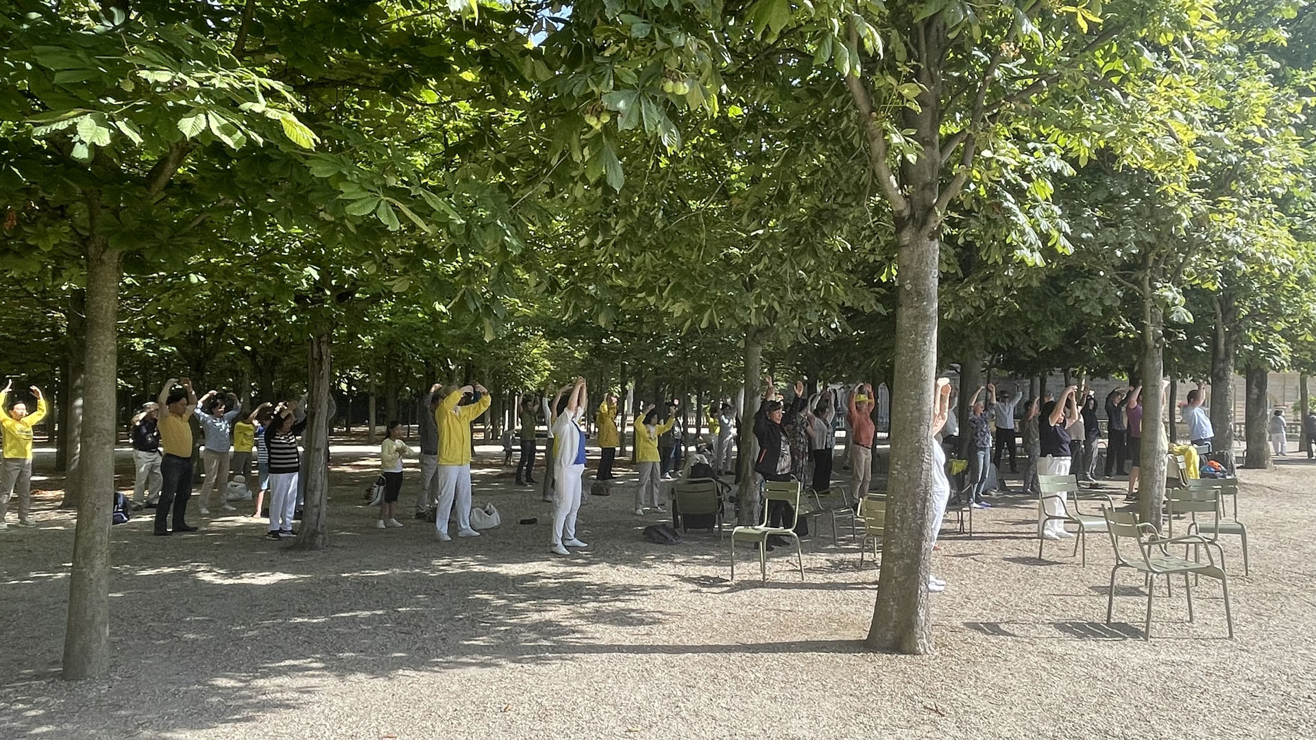 六月三十日星期日上午,部分法轮功学员又一起来到巴黎著名的卢森堡公园集体炼功,向民众展示法轮大法的五套功法。法国的参议院也坐落在这个公园里,因为这里的环境优美和舒适,每天都会吸引很多的游人和当地居民来此逗留。今天,同样有很多人都看到了法轮功的五套功法。
