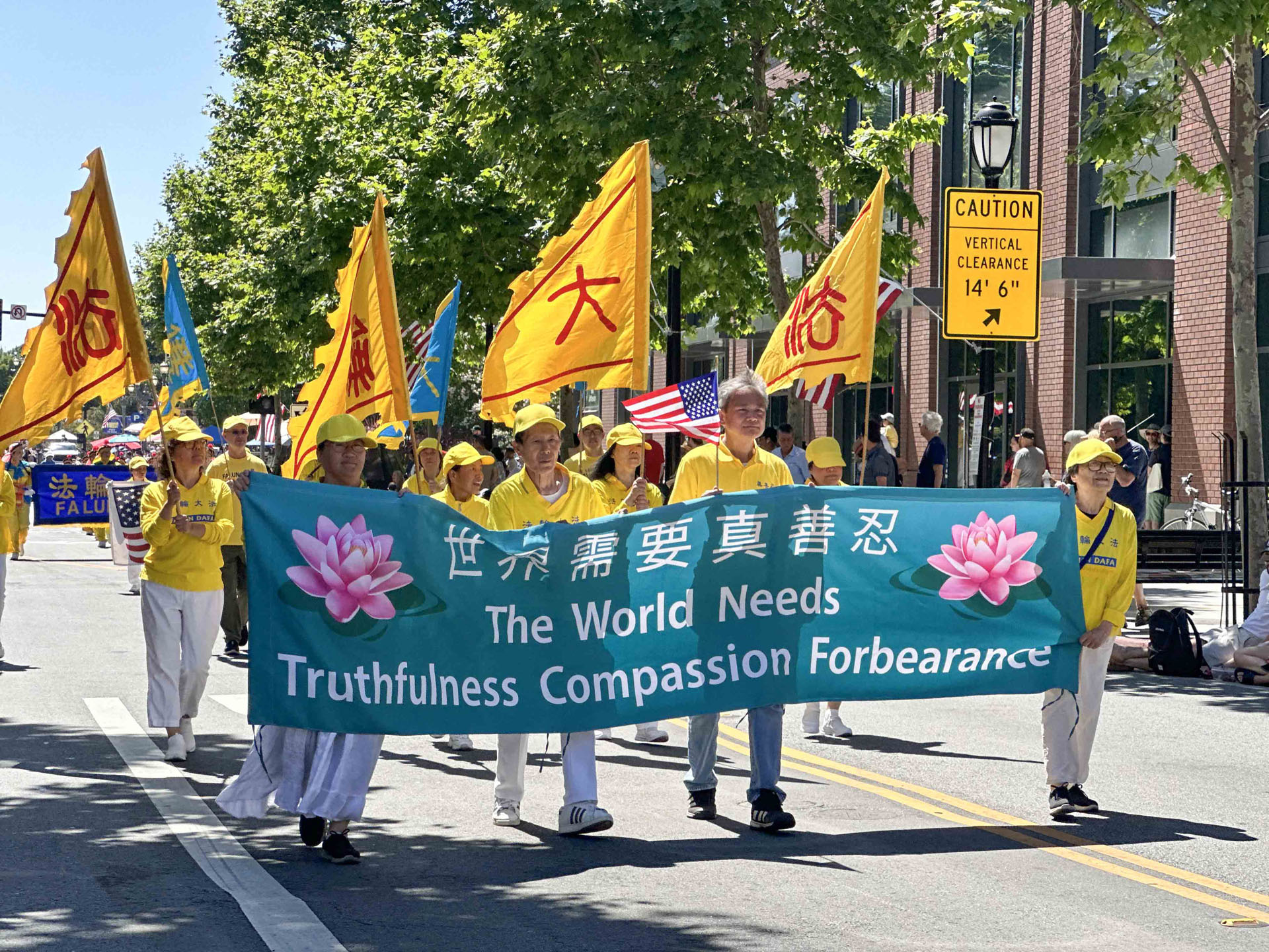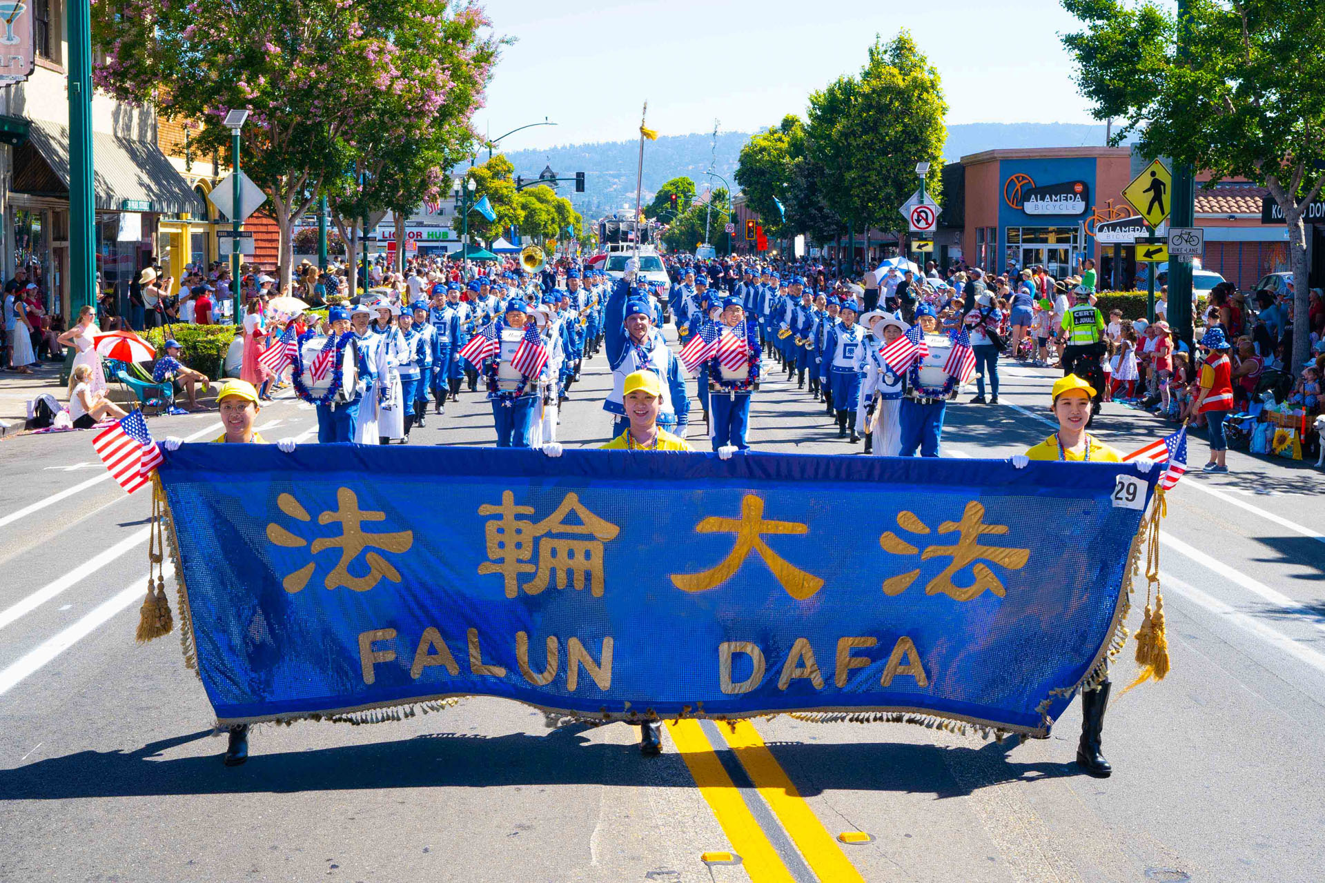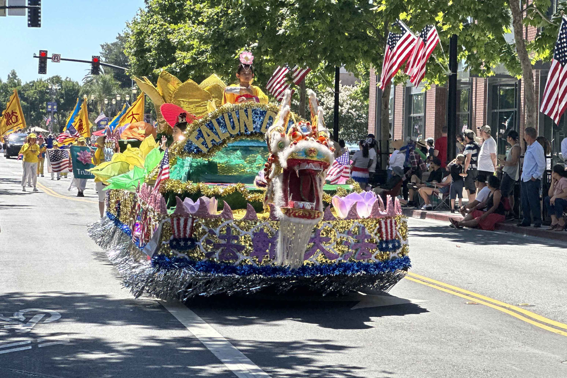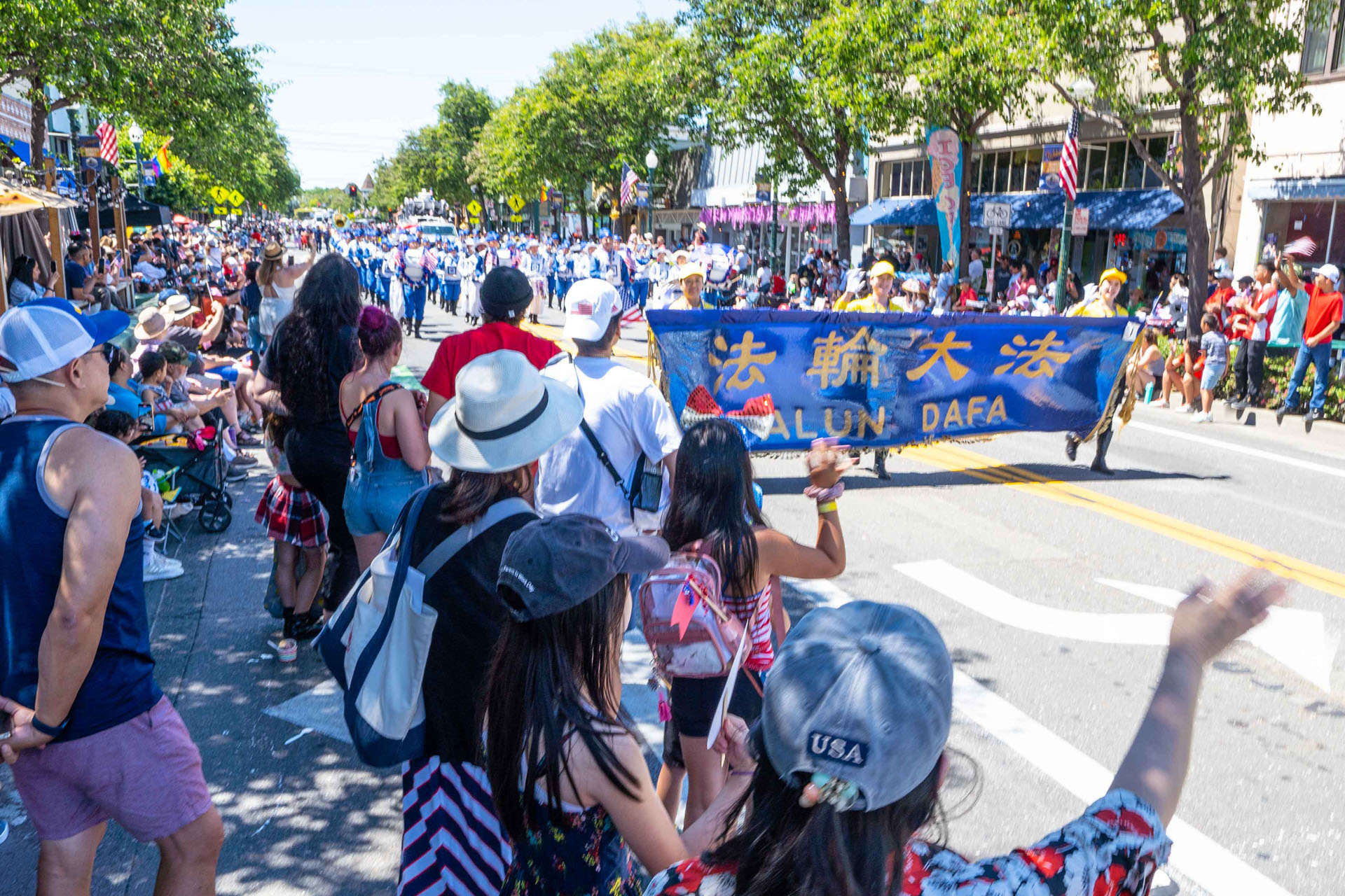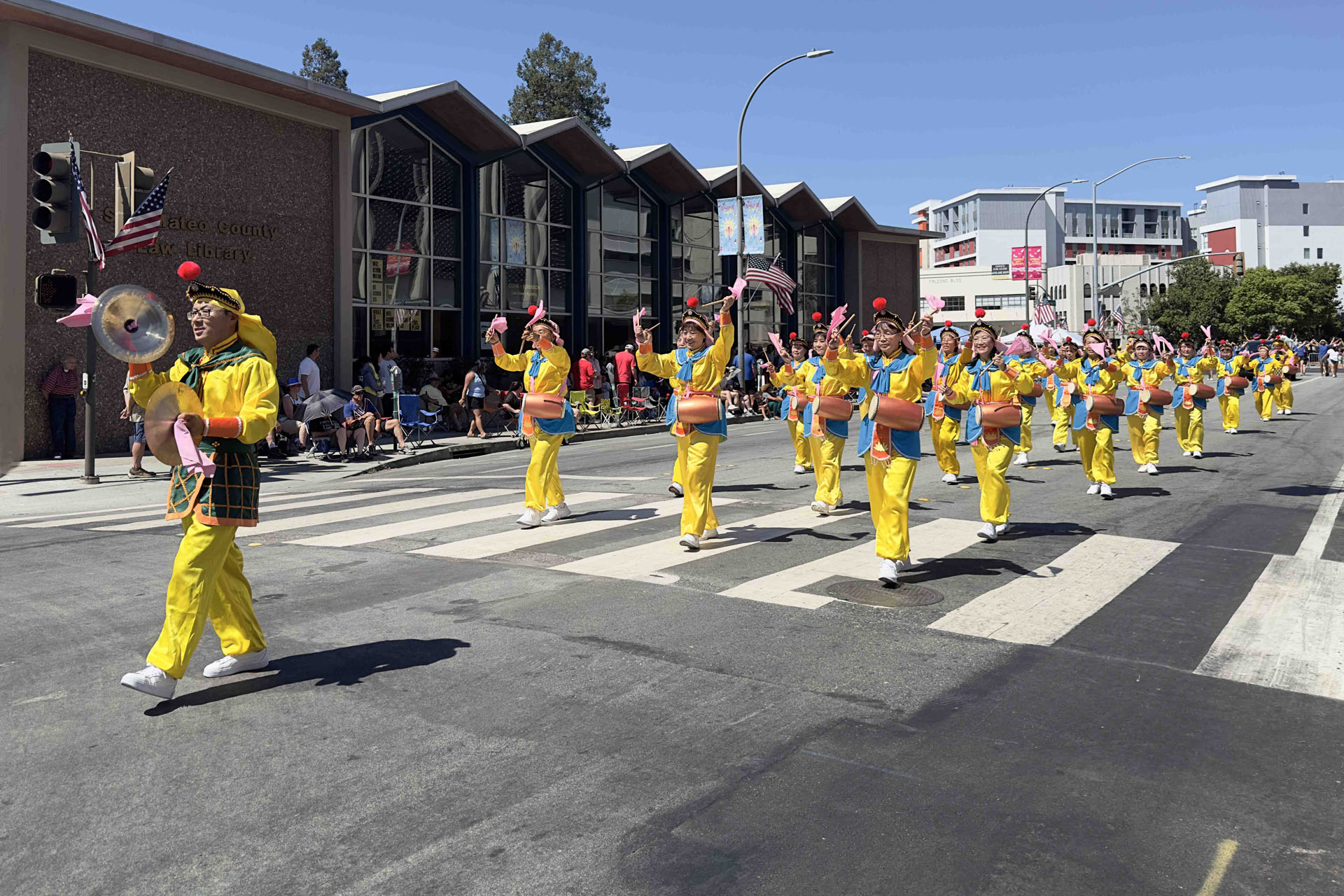 红木城市位于旧金山湾区中半岛,当地的独立日游行是北加州最大且历史最悠久的游行活动。法轮功的游行方队由炼功队、腰鼓队、旌旗队和花车组成。一路上,两旁的观众看到学员的队伍不断地鼓掌喝彩。