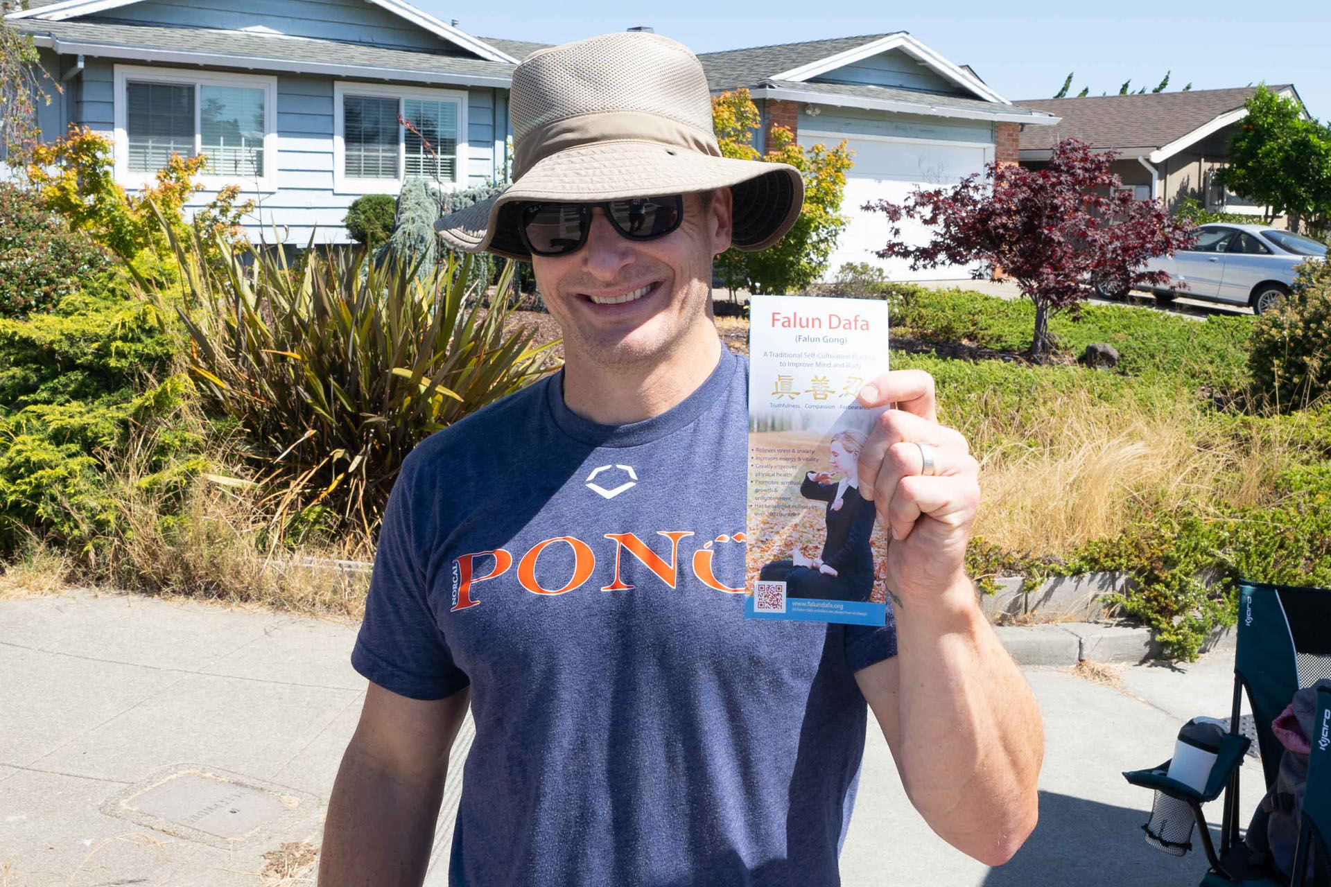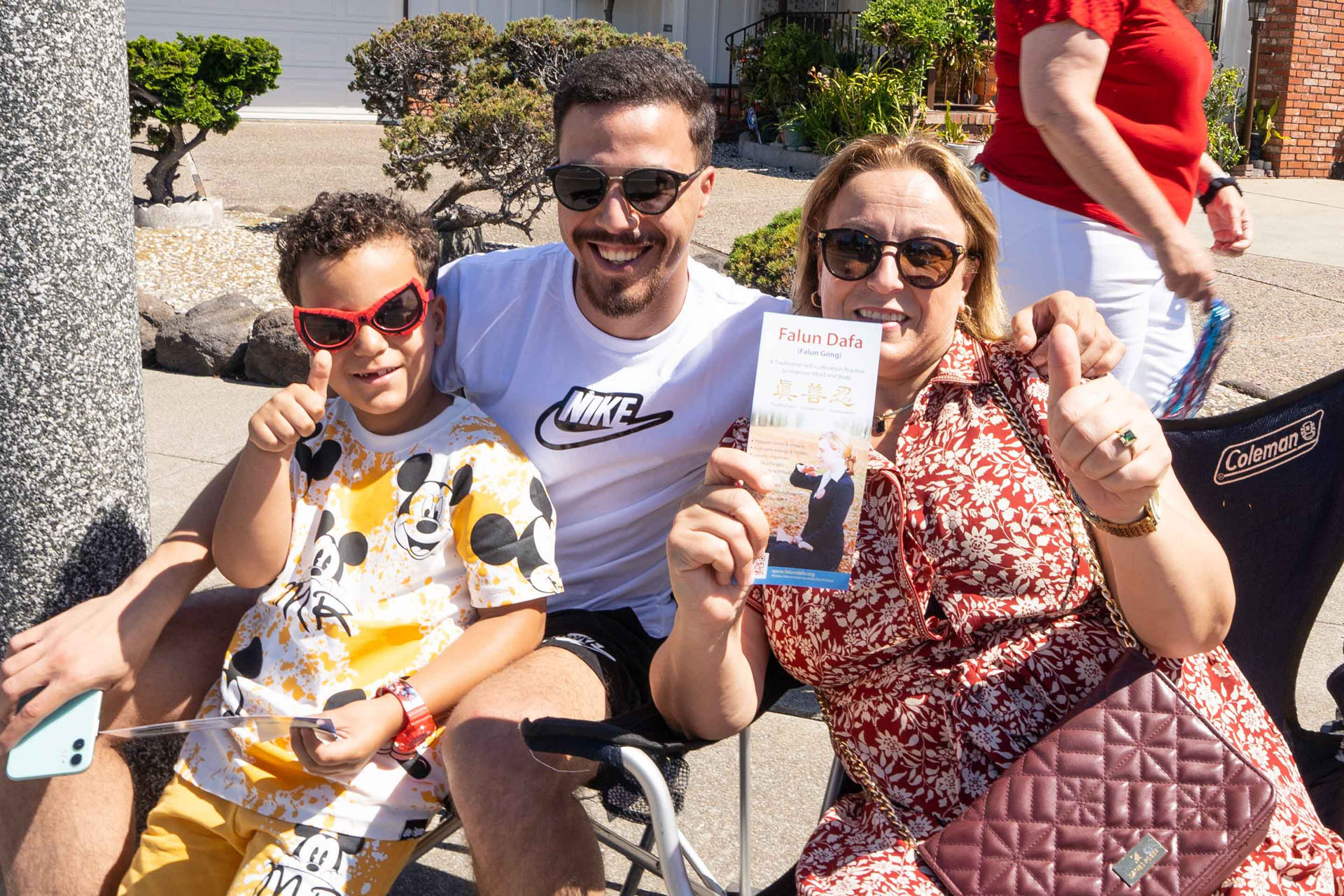旧金山湾区律师凯蒂(Katie)在游行结束后来到法轮功学员的摊位,她拿了介绍法轮功的真相传单,并签名支持法轮功学员反迫害。她说:“我喜爱他们,他们的队伍很壮观。我很喜欢他们散发的能量,平和、向上、相互支持。他们将这些能量带到社区,我认为很好。”