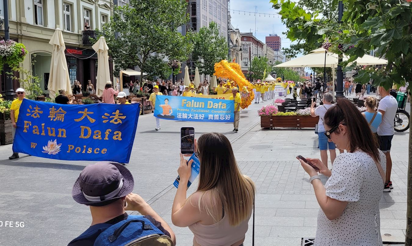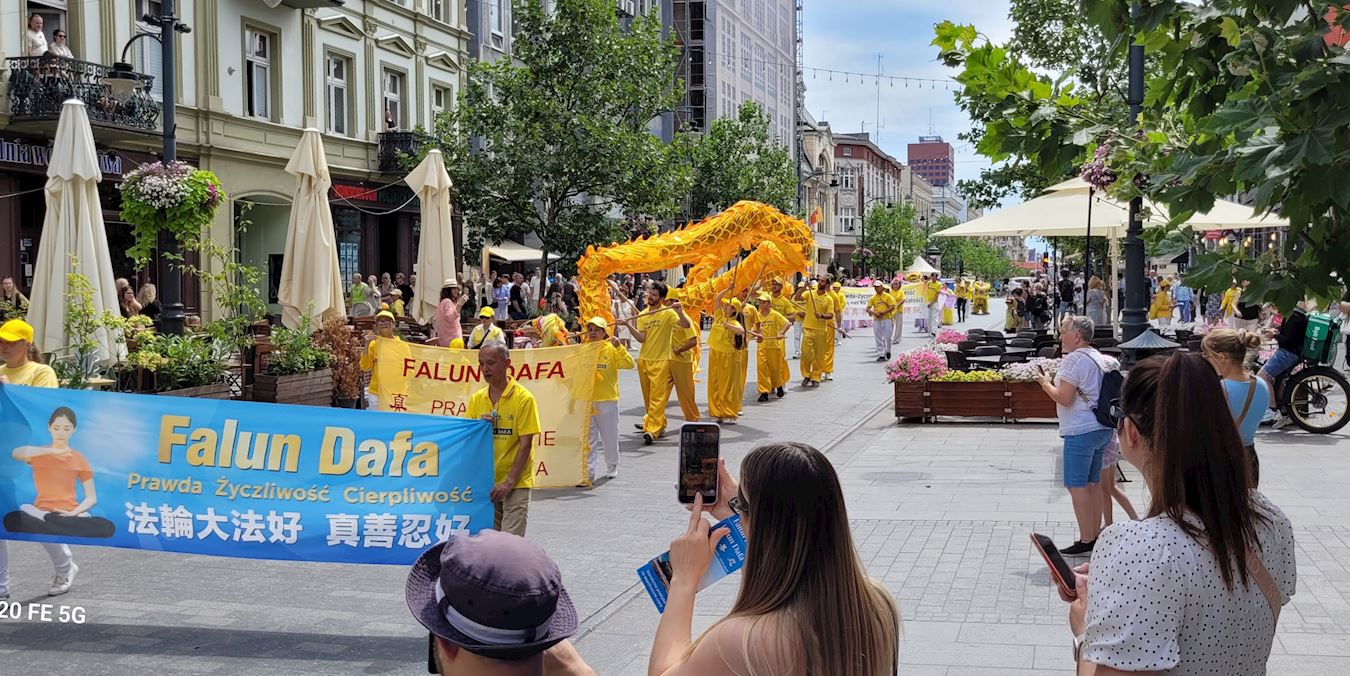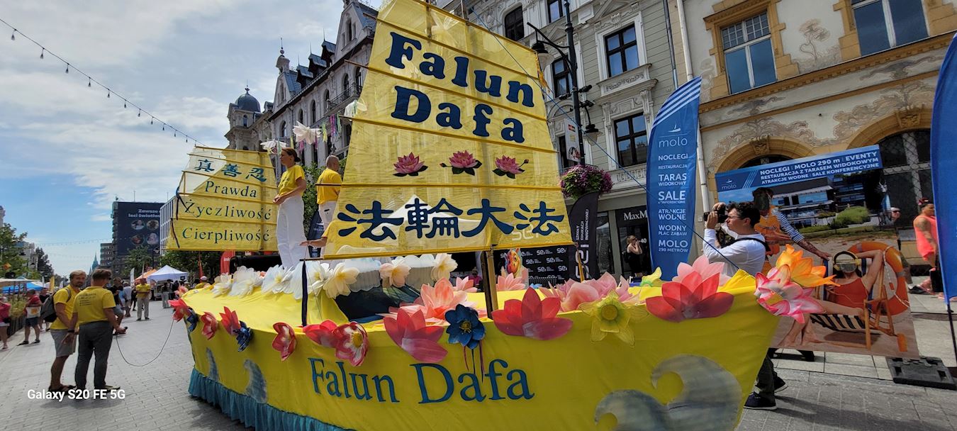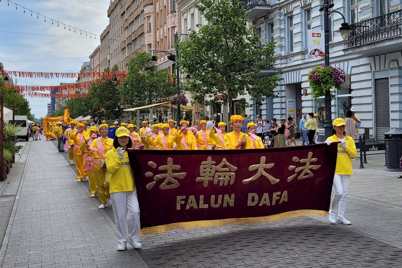 【明慧网二零二四年八月一日】二零二四年七月二十七日,波兰中部城市罗兹市迎来601周年市庆,捷克、德国与波兰法轮功学员共同组成壮观的游行队伍参加了庆祝活动,受到沿街民众的热烈欢迎。大游行的图片即出现在当地多家媒体的封面报道之中,很多人说:“第一次看见这样的游行队伍,太震撼人心了。”
