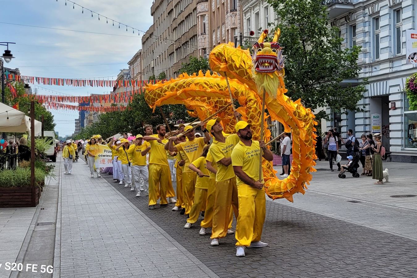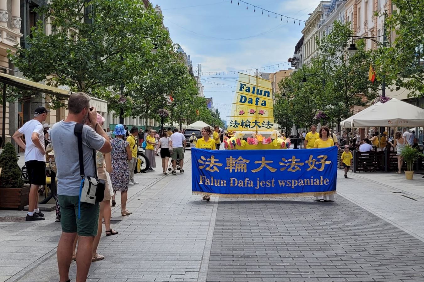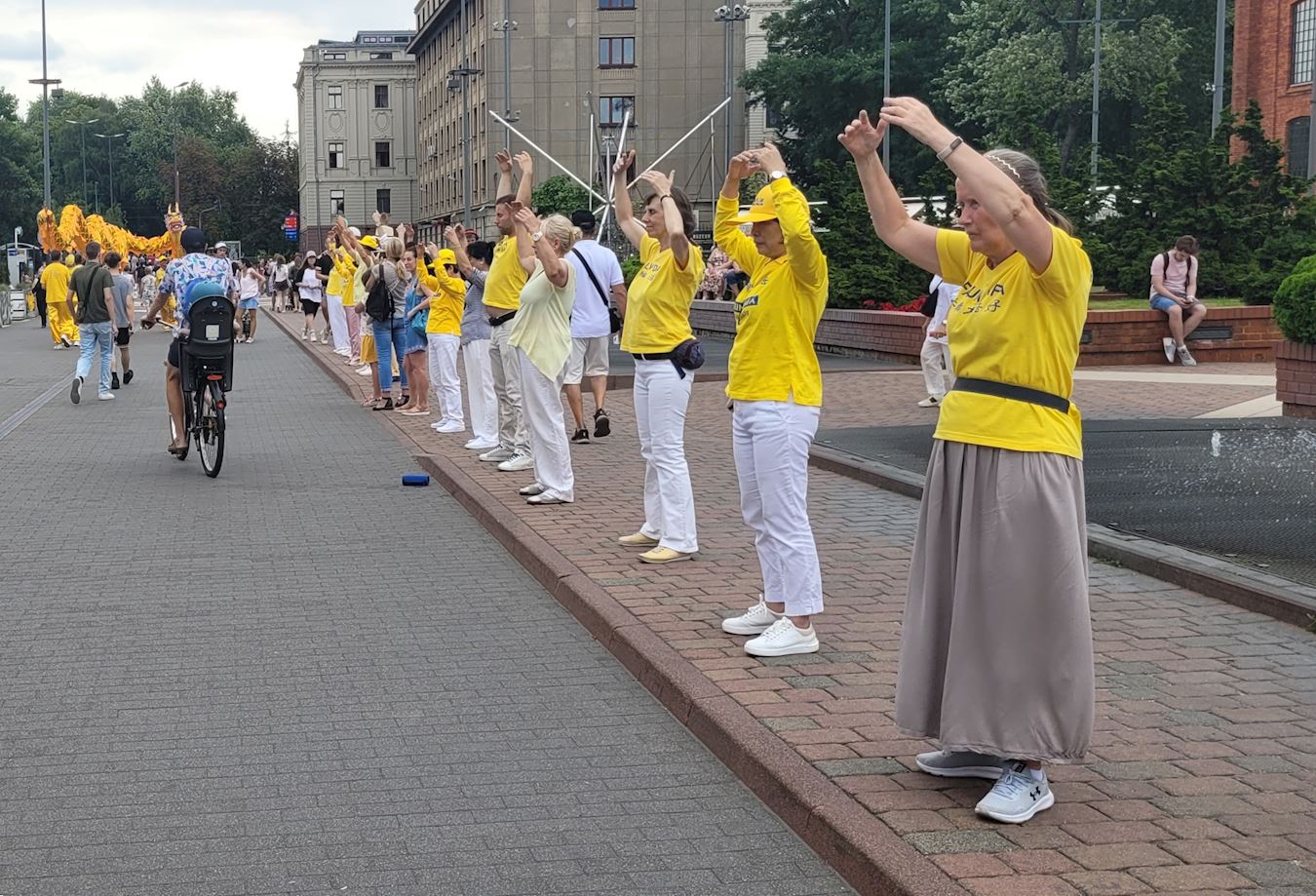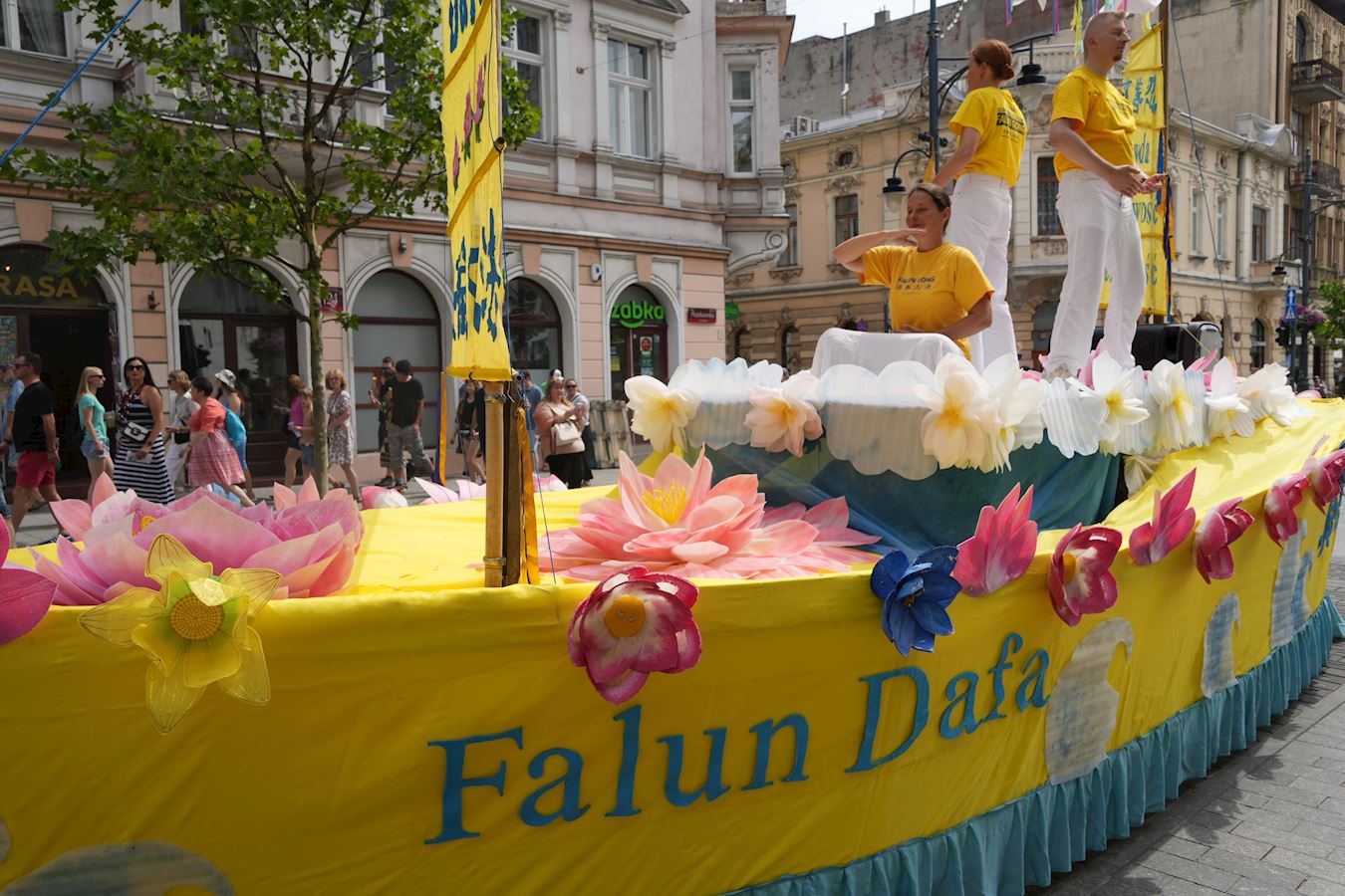 【明慧网二零二四年八月一日】二零二四年七月二十七日,波兰中部城市罗兹市迎来601周年市庆,捷克、德国与波兰法轮功学员共同组成壮观的游行队伍参加了庆祝活动,受到沿街民众的热烈欢迎。大游行的图片即出现在当地多家媒体的封面报道之中,很多人说:“第一次看见这样的游行队伍,太震撼人心了。”