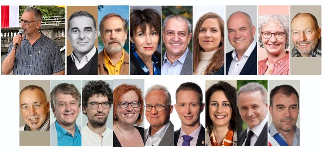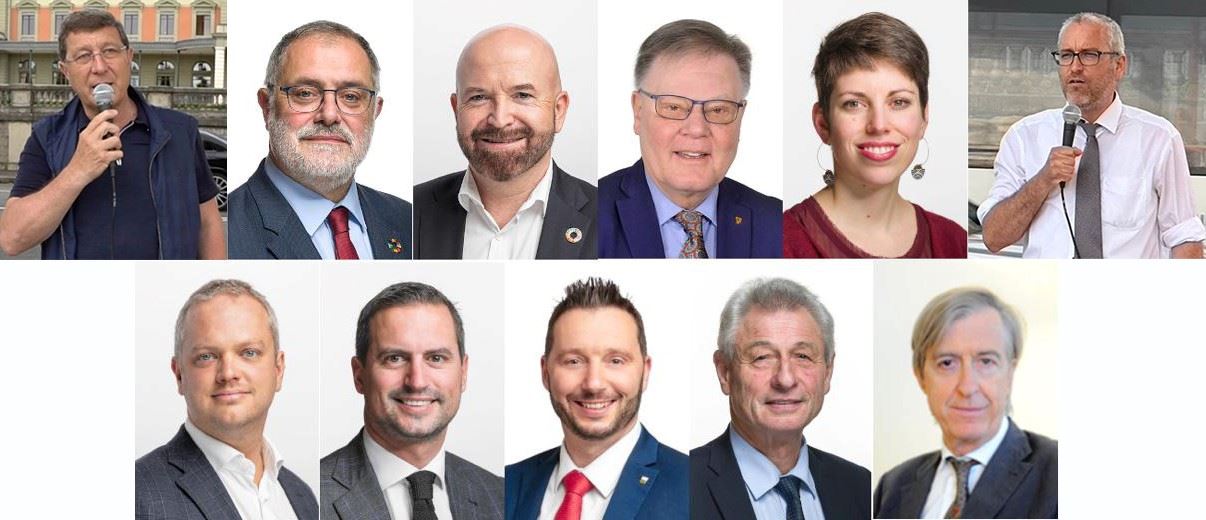 汝拉州大议会议员尼古拉斯·迈特(Nicolas Maître);沃州大议会议员,沃州大议会外交事务委员会副主席皮埃尔·茨瓦伦(Pierre Zwahlen);沃州大议会议员哈德里安·布克林(Hadrien Buclin);沃州大议会议员伊莎贝尔·弗莱蒙德(Isabelle Freymond);瓦莱州大议会议员罗伯特·伯里(Robert Burri);瓦莱州大议会议员代理马克西姆·莫瓦(Maxime Moix);提契诺州大议会议员泰莎·普拉蒂(Tessa Prati);提契诺州大议会议员马泰奥·夸兰蒂(Matteo Quadranti);法国大日内瓦地区雷尼埃-埃瑟里(Reignier-Ésery)镇市长卢卡斯·普金(Lucas Pugin)。